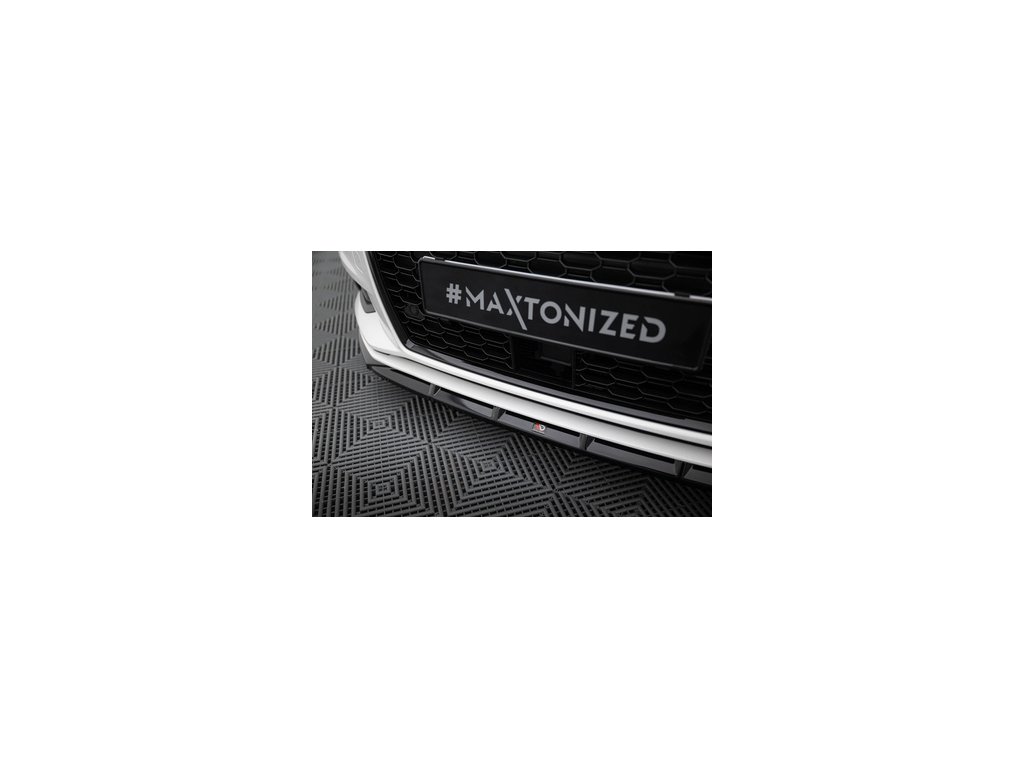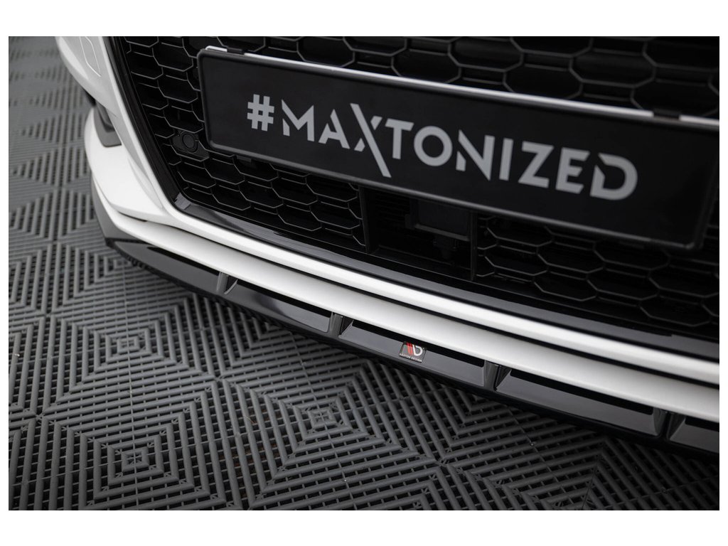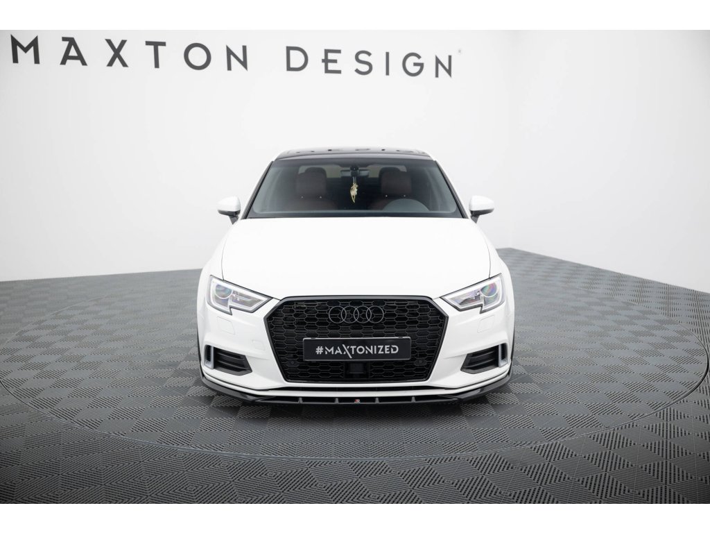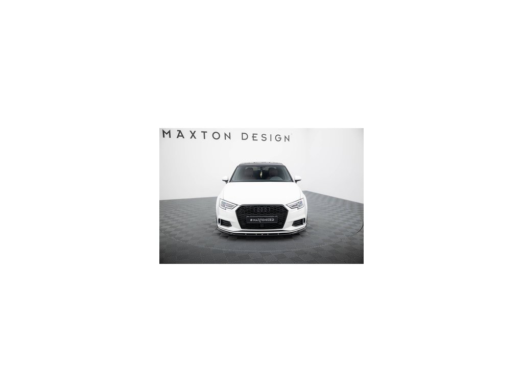 Maxton Design spoiler pod přední nárazník pro vozidlo Audi A3 8V FL . Povrchová úprava spoileru černý lesklý plast ABS.
