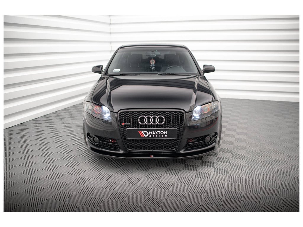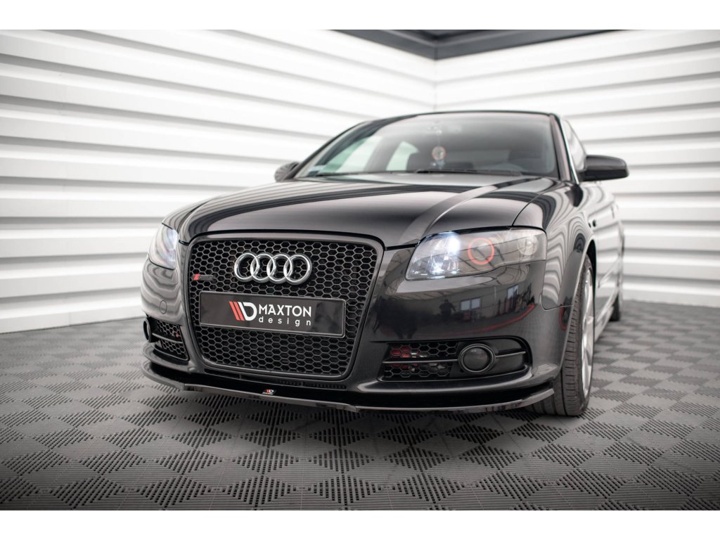 Maxton Design spoiler pod přední nárazník pro vozidlo Audi A4 B7 . Povrchová úprava spoileru černý lesklý plast ABS.
