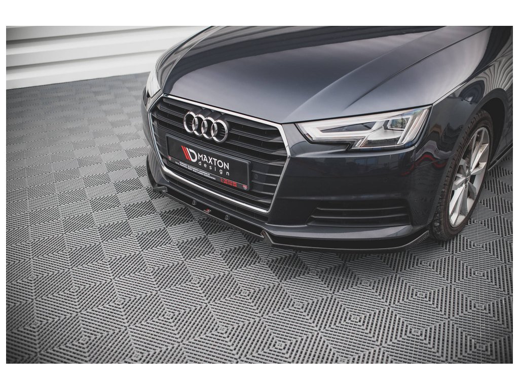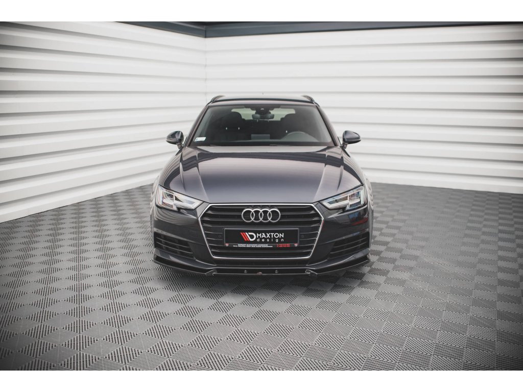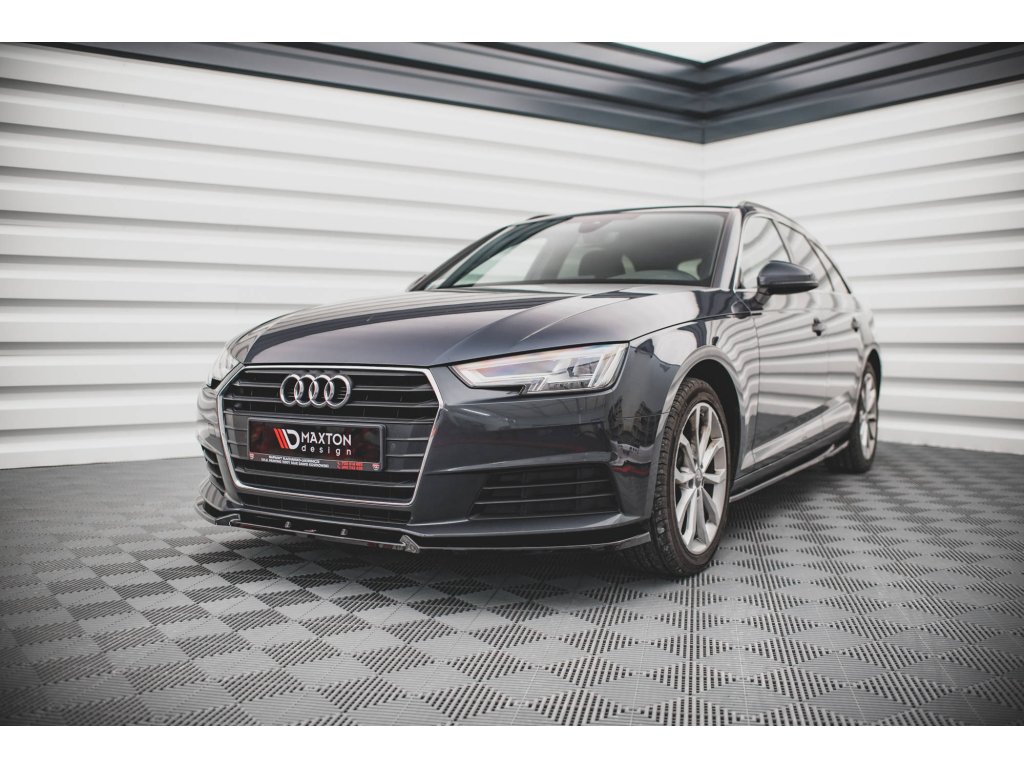 Maxton Design spoiler pod přední nárazník pro vozidlo Audi A4 B9 . Povrchová úprava spoileru černý lesklý plast ABS.