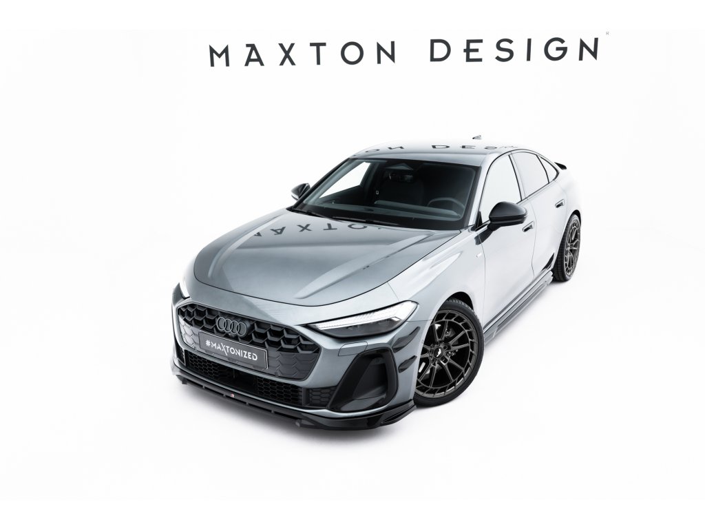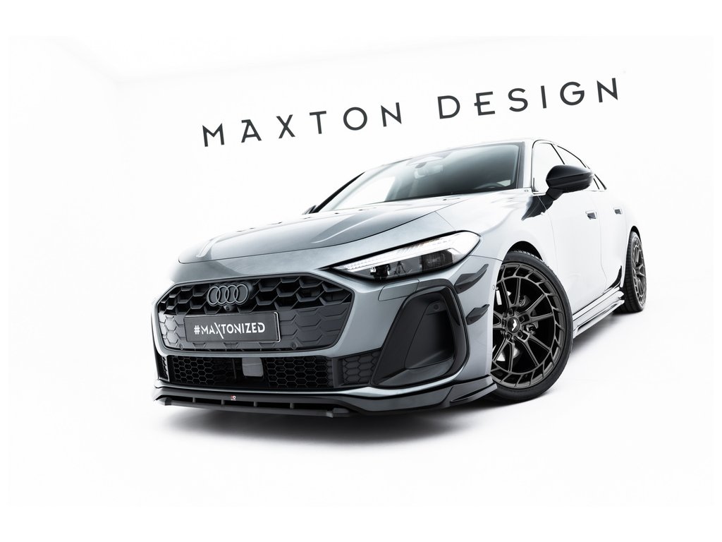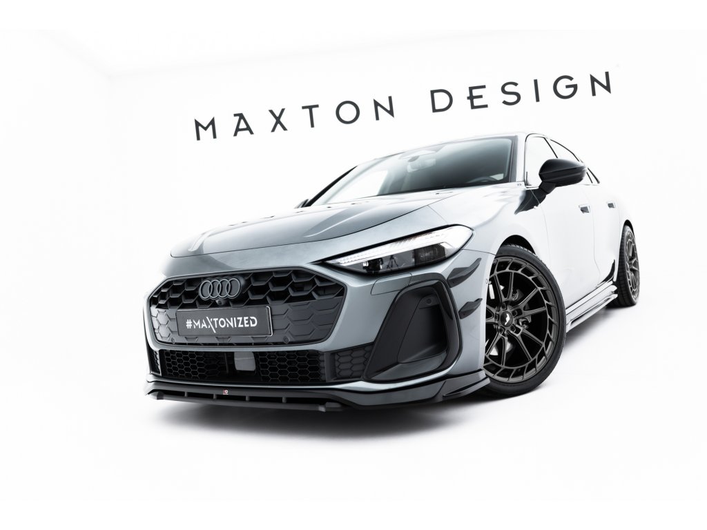 Maxton Design spoiler pod přední nárazník pro vozidlo Audi A5 B10 . Povrchová úprava spoileru černý lesklý plast ABS.