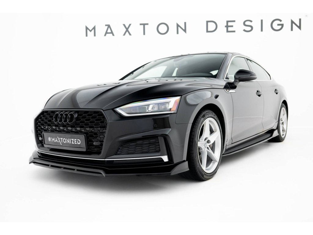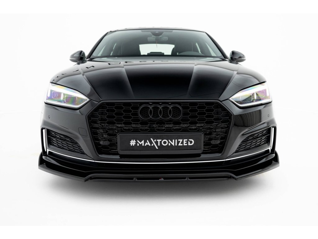 Maxton Design spoiler pod přední nárazník pro vozidlo Audi A5 F5 . Povrchová úprava spoileru černý lesklý plast ABS.