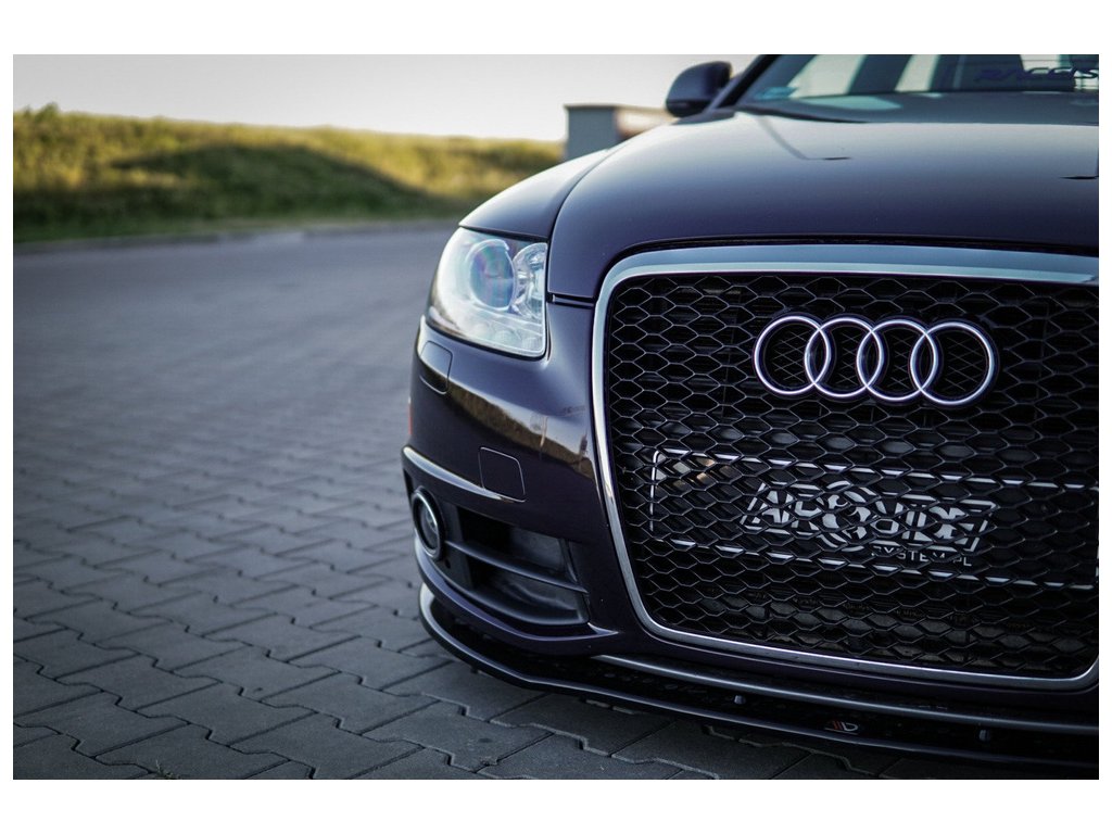 Maxton Design spoiler pod přední nárazník pro vozidlo Audi A6 C6 FL . Povrchová úprava spoileru černý lesklý plast ABS.