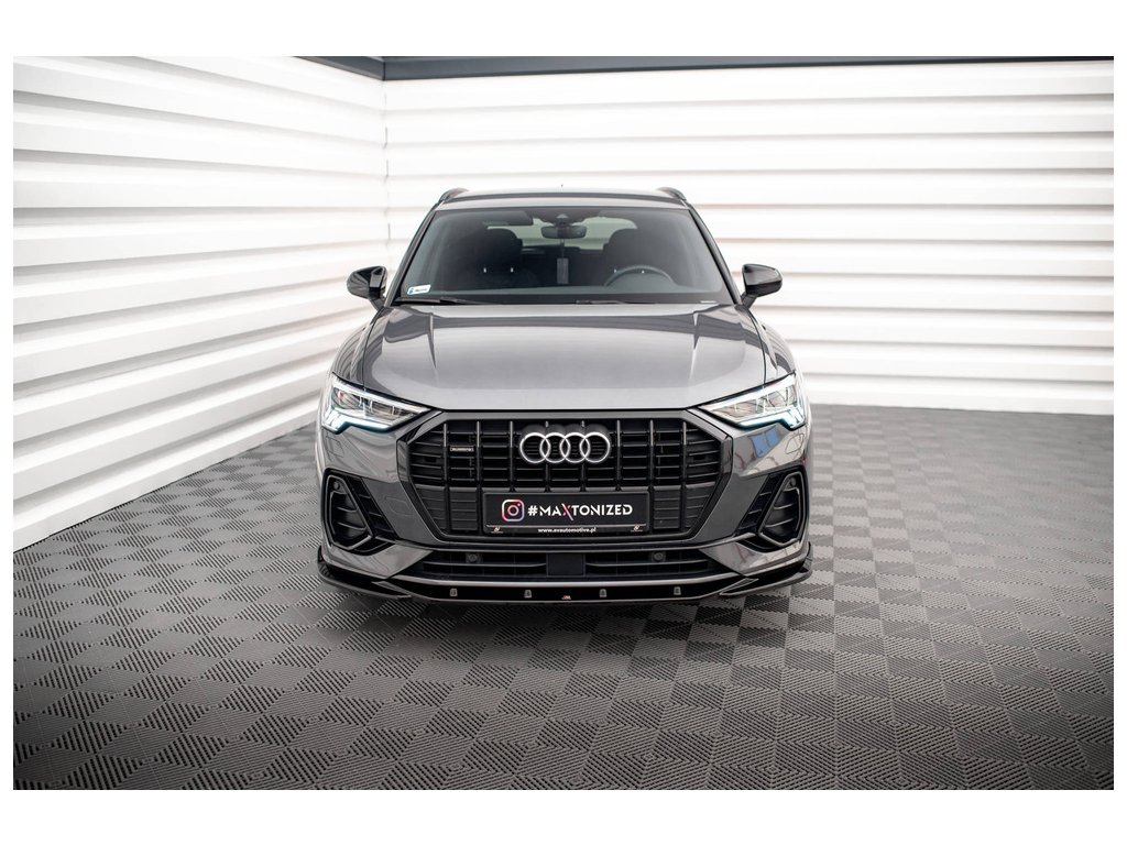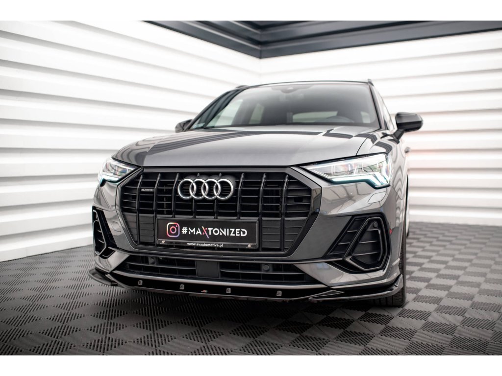 Maxton Design spoiler pod přední nárazník pro vozidlo Audi Q3 F3 S-Line . Povrchová úprava spoileru černý lesklý plast ABS.
