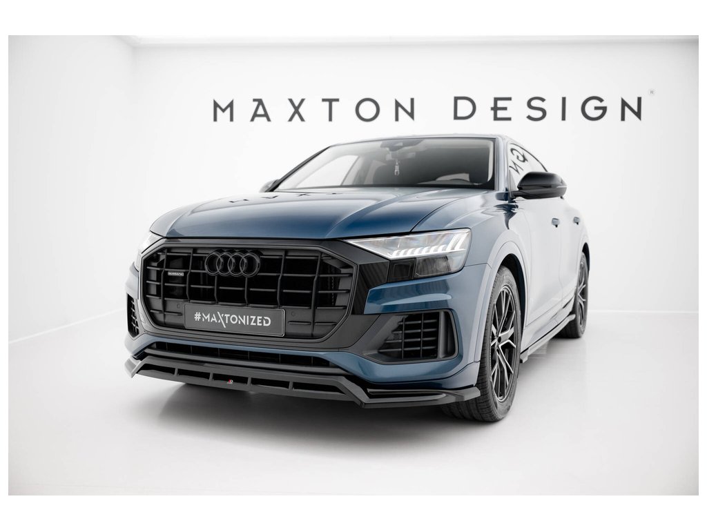 Maxton Design spoiler pod přední nárazník pro vozidlo Audi Q8 Mk 1 . Povrchová úprava spoileru černý lesklý plast ABS.