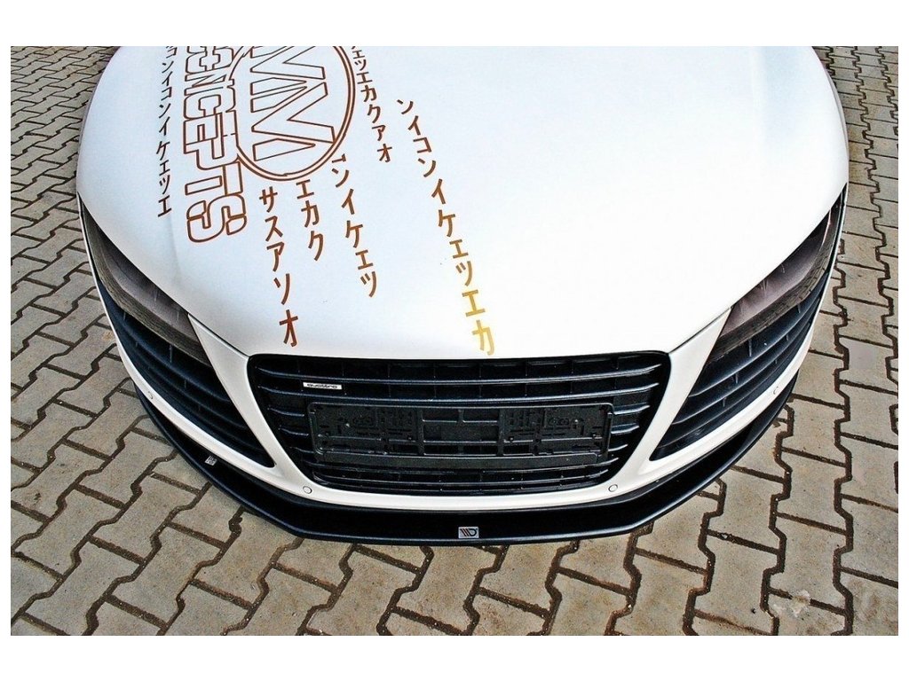 Maxton Design spoiler pod přední nárazník pro vozidlo Audi R8 Mk1 . Povrchová úprava spoileru černý lesklý plast ABS.