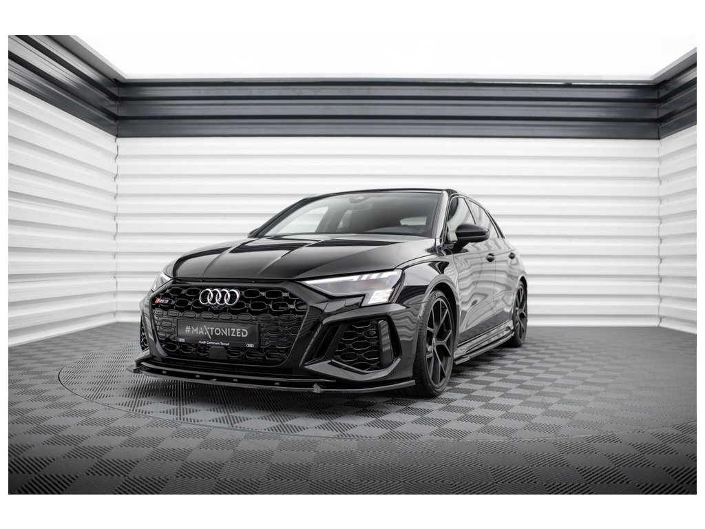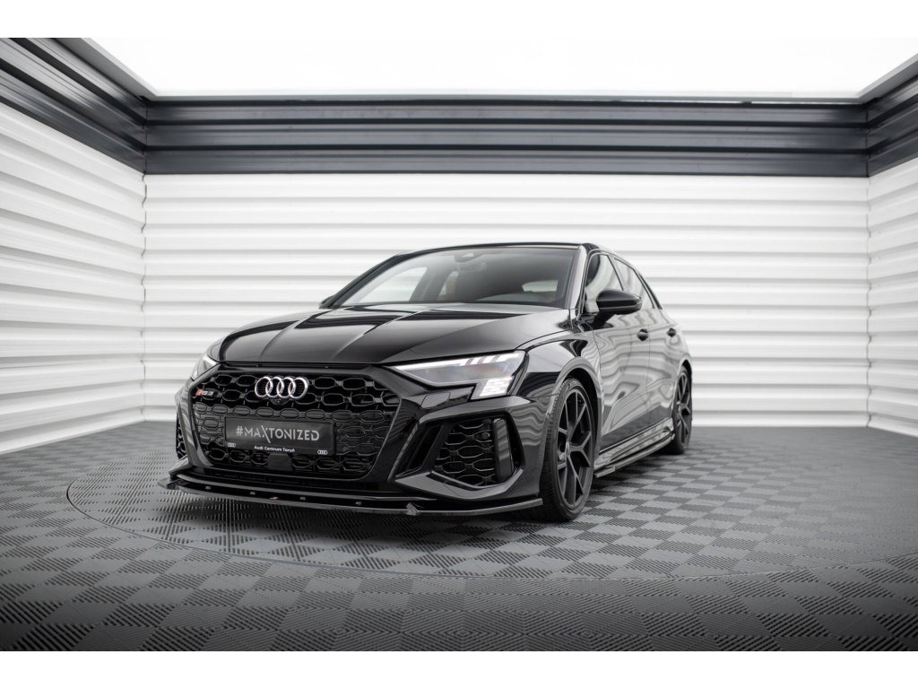 Maxton Design spoiler pod přední nárazník pro Audi RS3 8Y, černý lesklý plast ABS, Sedan/Sportback