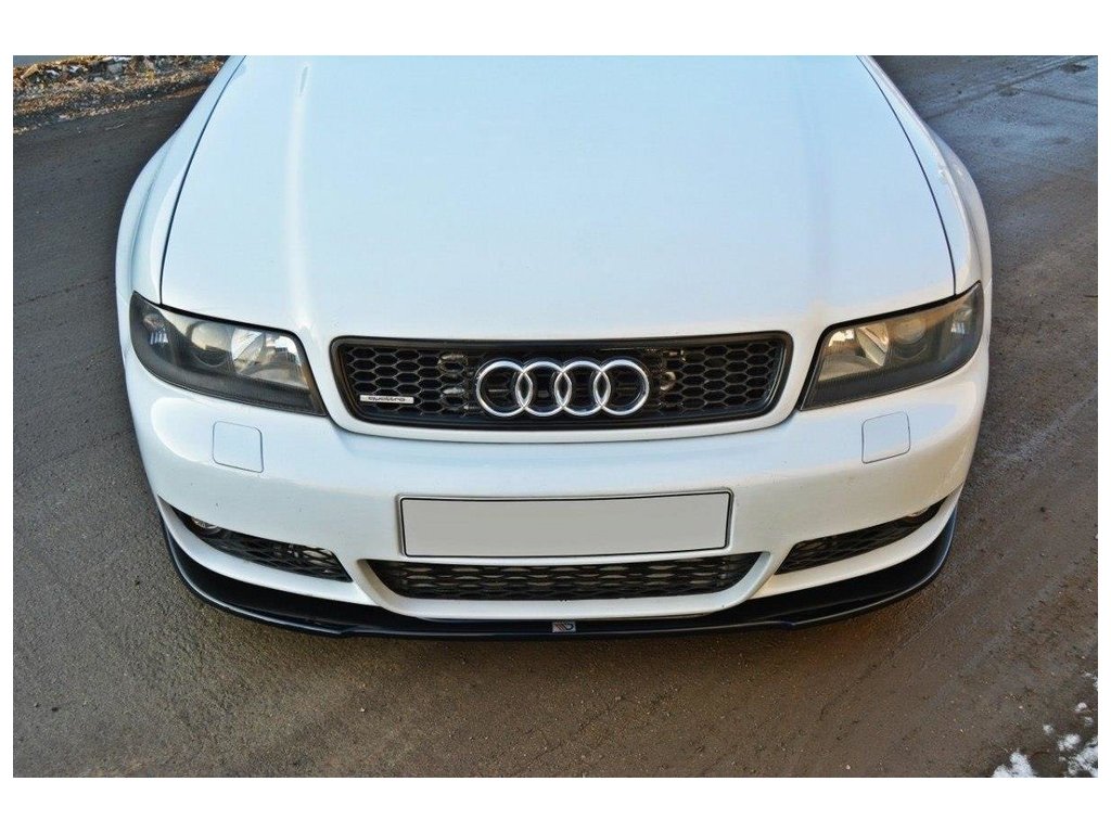 Maxton Design spoiler pod přední nárazník pro vozidlo Audi RS4 B5 . Povrchová úprava spoileru černý lesklý plast ABS.