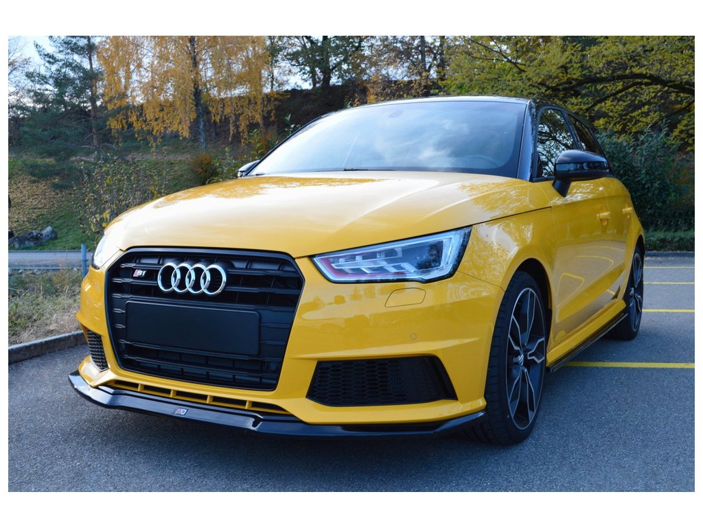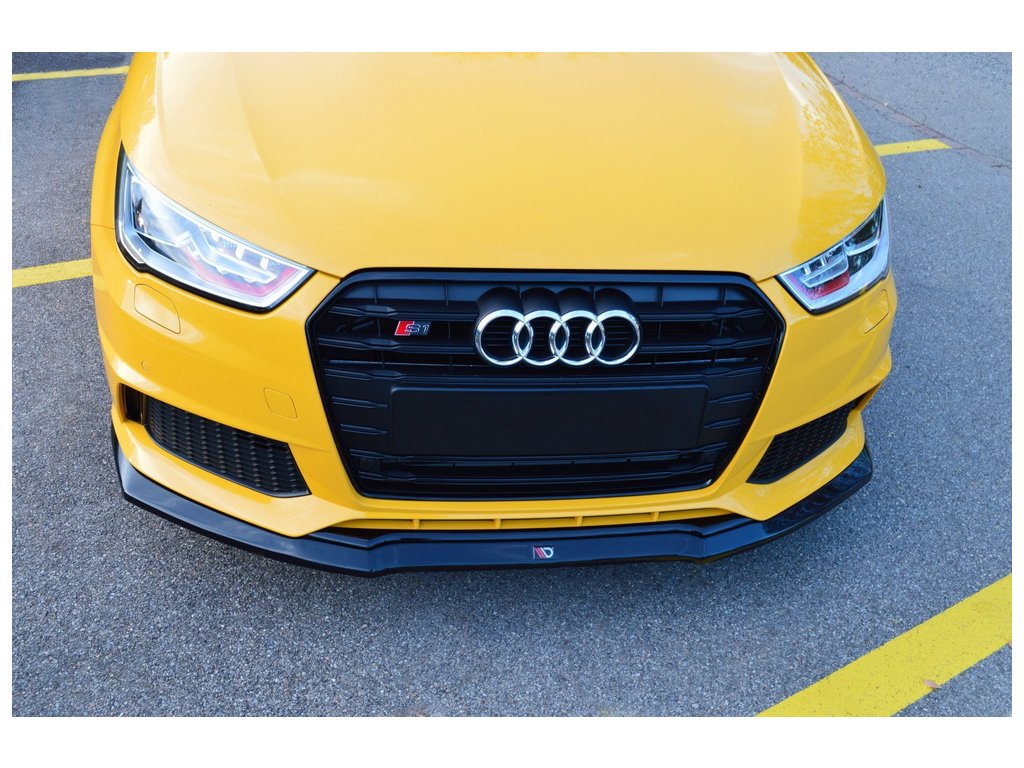 Maxton Design spoiler pod přední nárazník pro vozidlo Audi S1 Mk1 . Povrchová úprava spoileru černý lesklý plast ABS.