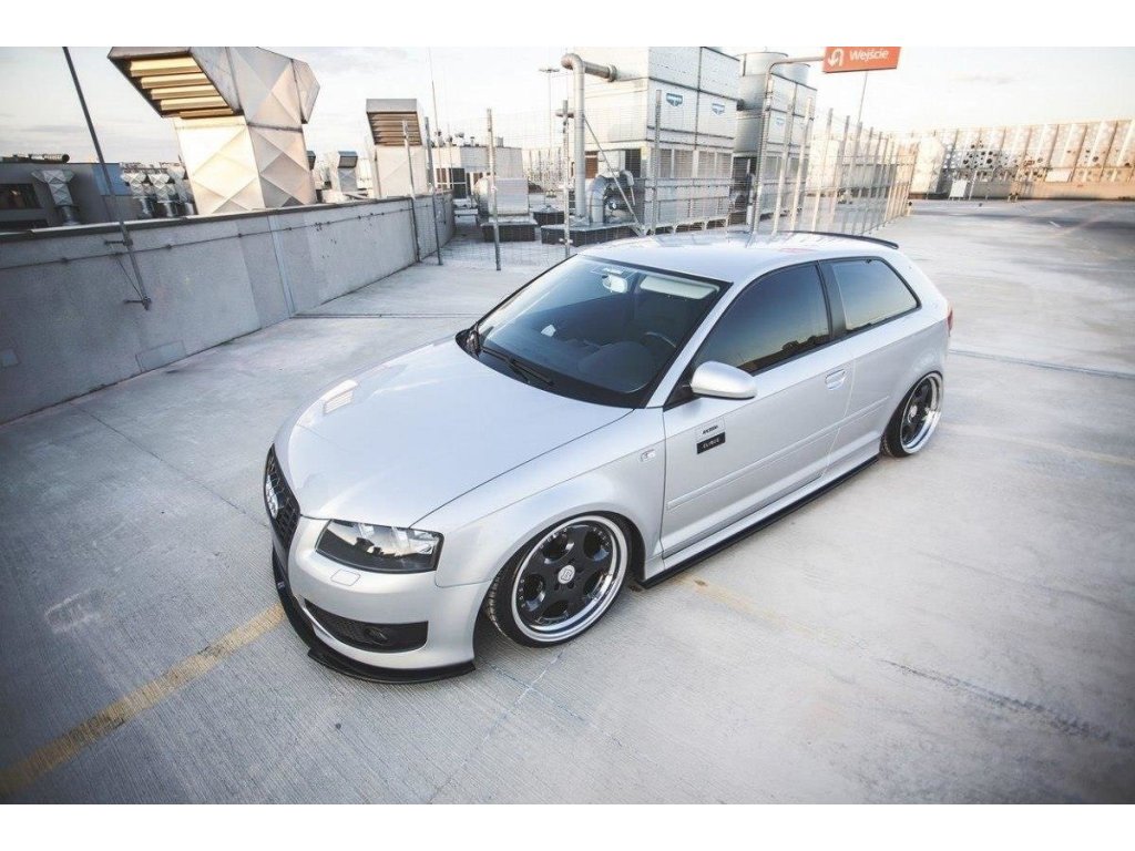 Maxton Design spoiler pod přední nárazník pro Audi S3 8P, černý lesklý plast ABS