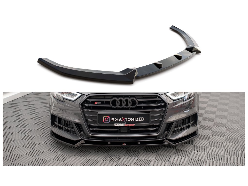 Maxton Design spoiler pod přední nárazník pro vozidlo Audi S3 8V FL . Povrchová úprava spoileru carbon-Look.
