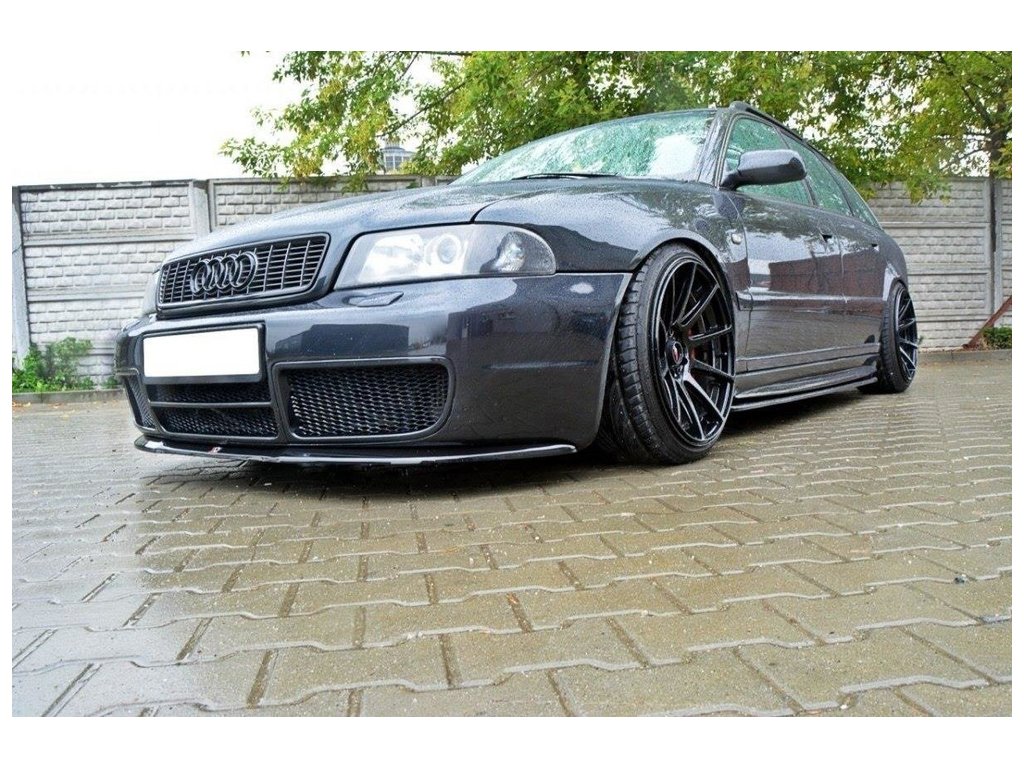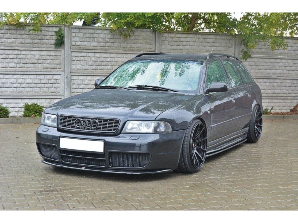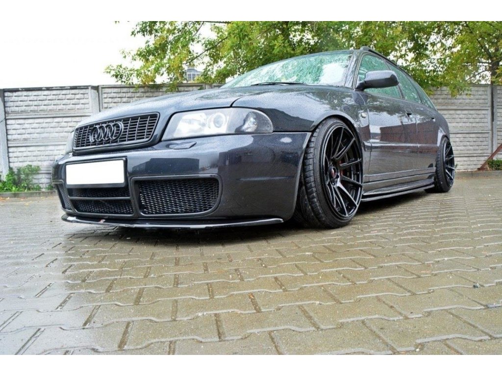 Maxton Design spoiler pod přední nárazník pro vozidlo Audi S4 B5 . Povrchová úprava spoileru černý lesklý plast ABS.