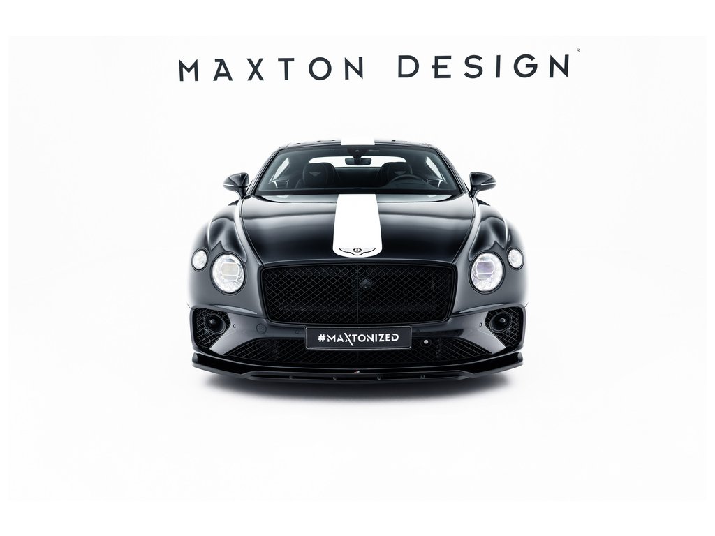 Maxton Design spoiler pod přední nárazník pro vozidlo Bentley Continental GT Mk3 . Povrchová úprava spoileru černý lesklý plast ABS.