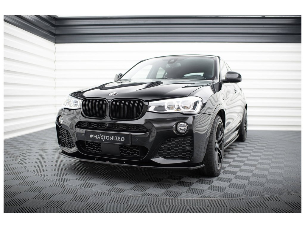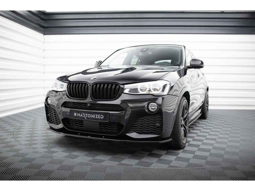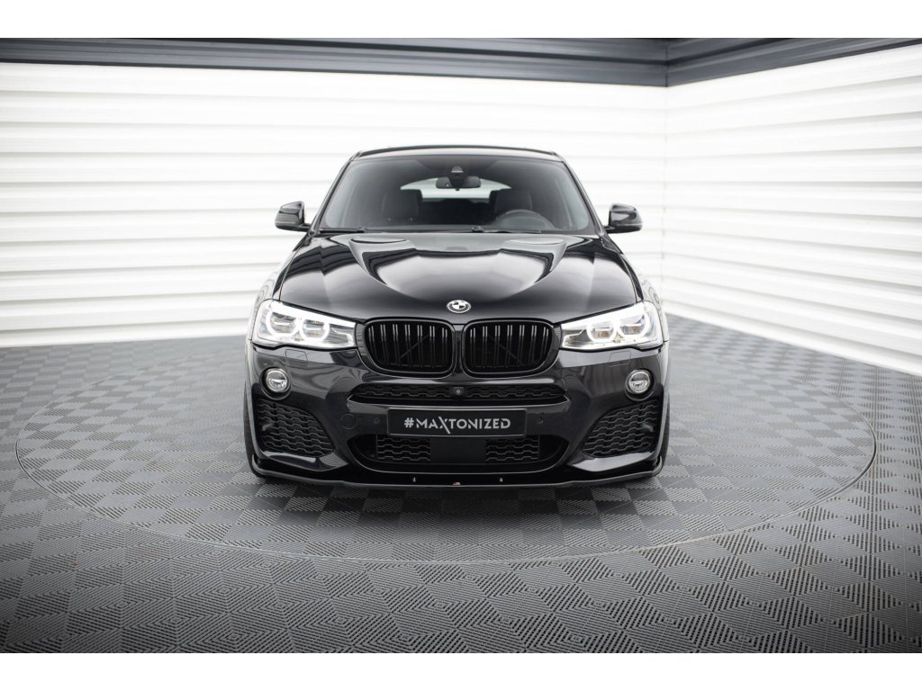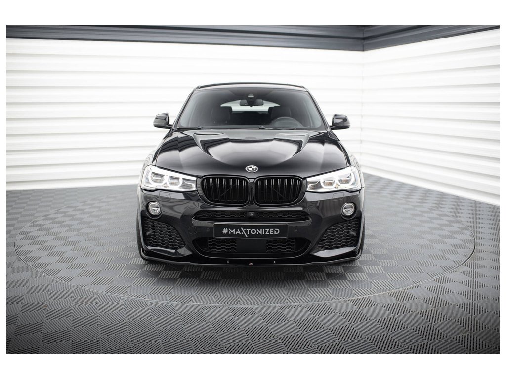 Maxton Design spoiler pod přední nárazník pro vozidlo BMW X4 F26 . Povrchová úprava spoileru černý lesklý plast ABS.