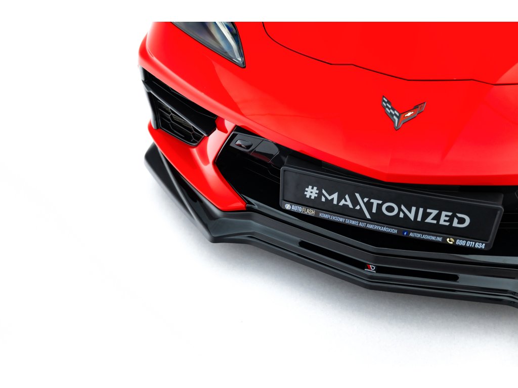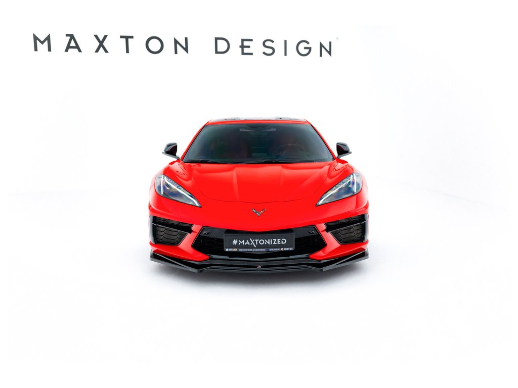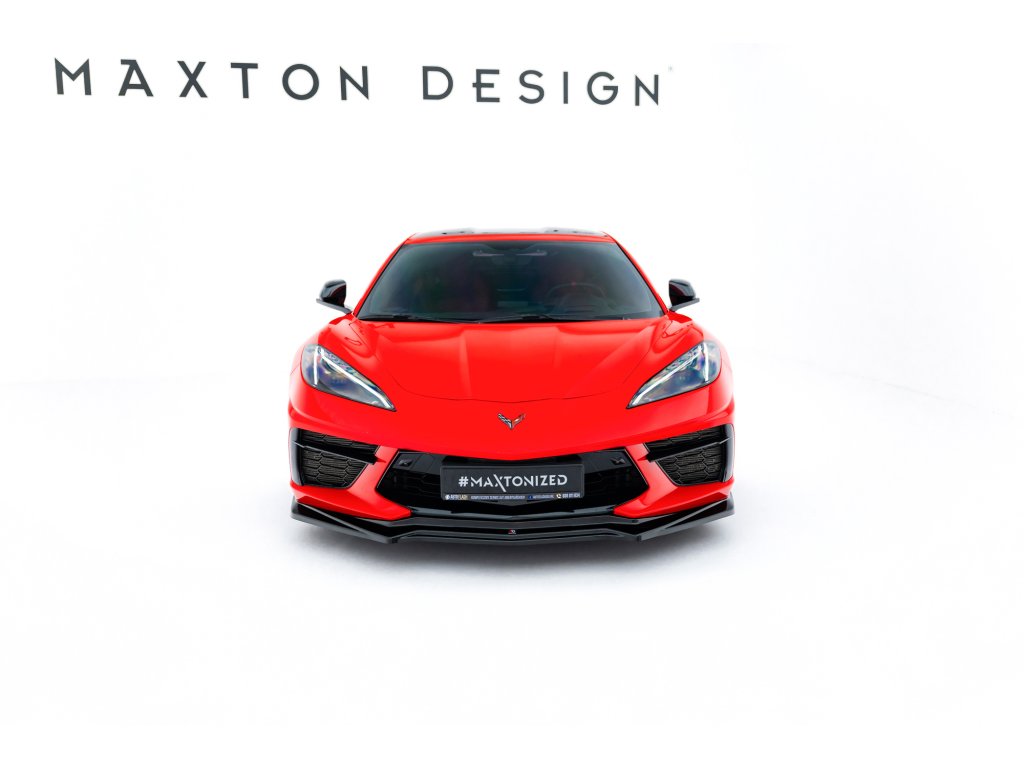 Maxton Design spoiler pod přední nárazník pro vozidlo Chevrolet Corvette C8 . Povrchová úprava spoileru černý lesklý plast ABS.
