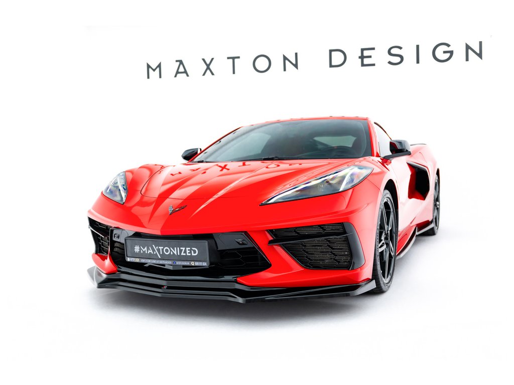 Maxton Design spoiler pod přední nárazník pro Chevrolet Corvette C8, černý lesklý plast ABS