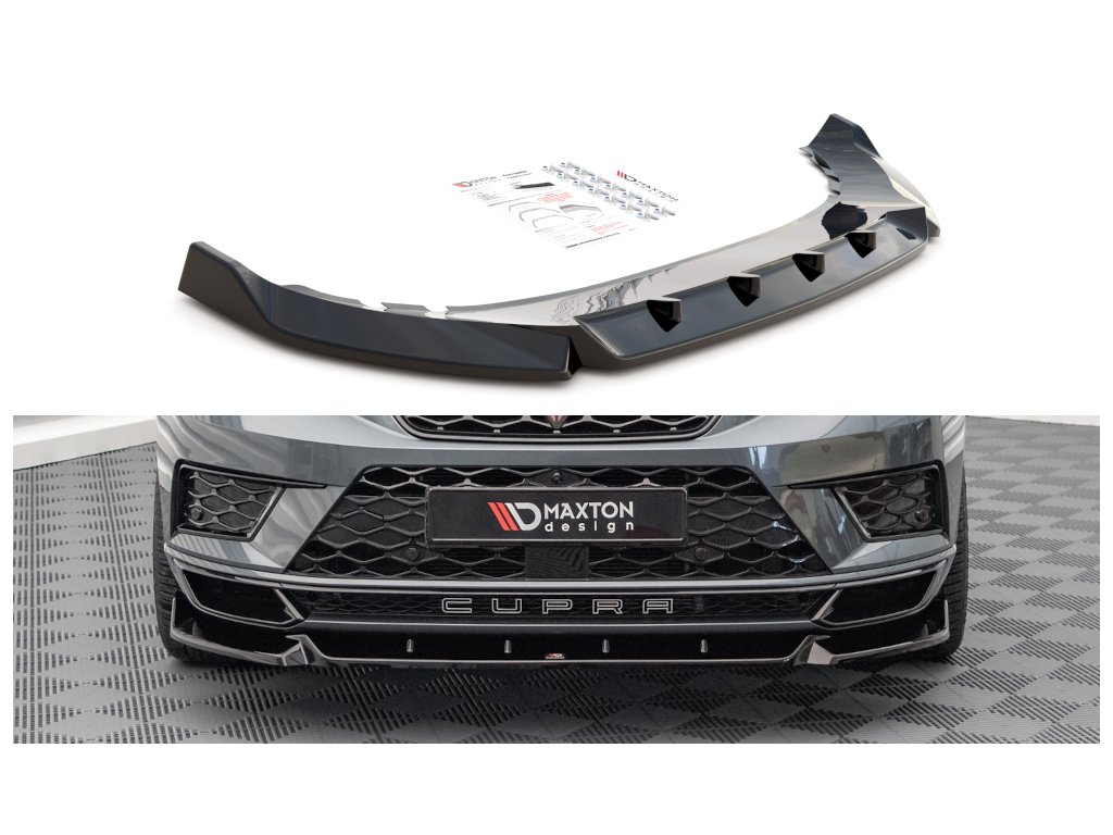 Maxton Design spoiler pod přední nárazník pro vozidlo Cupra Ateca . Povrchová úprava spoileru carbon-Look.