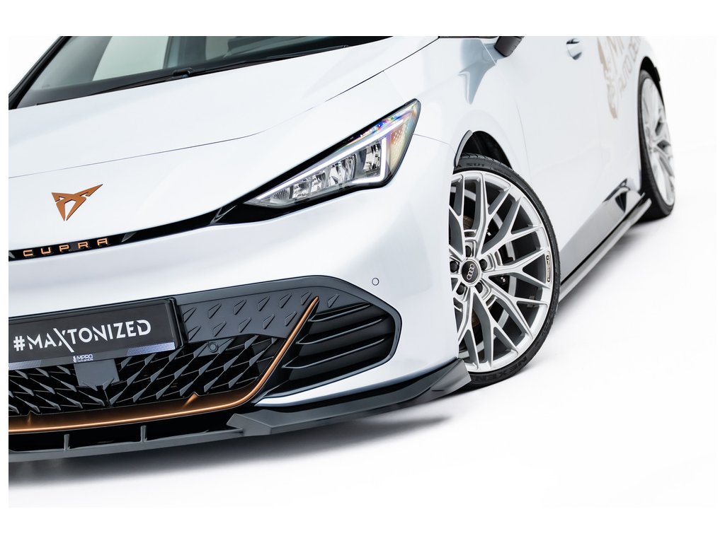 Maxton Design spoiler pod přední nárazník pro vozidlo Cupra Born Mk1 . Povrchová úprava spoileru černý lesklý plast ABS.