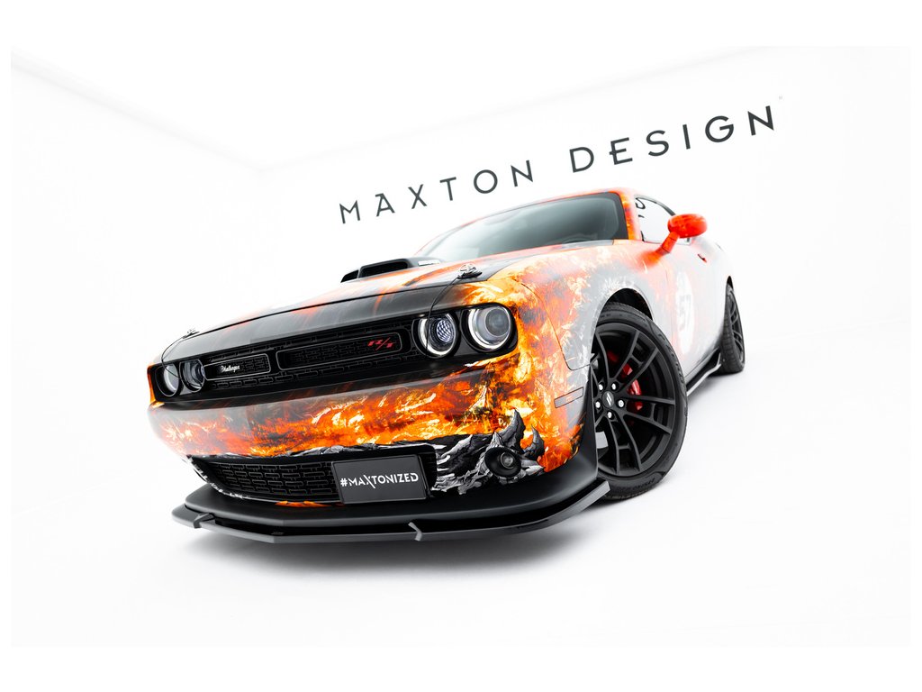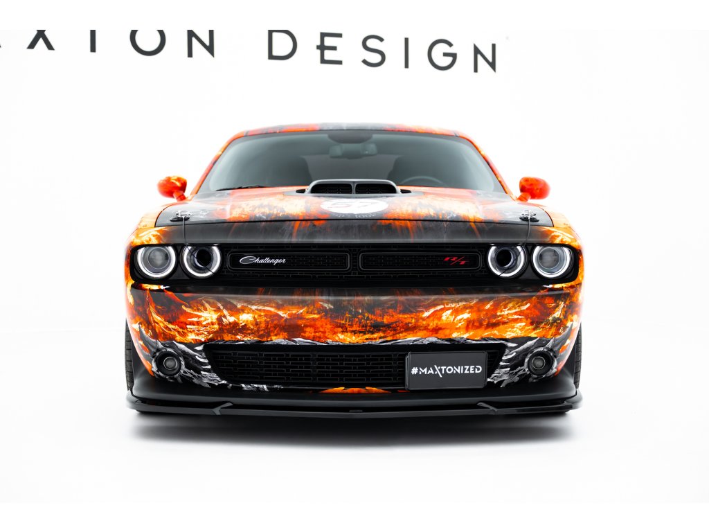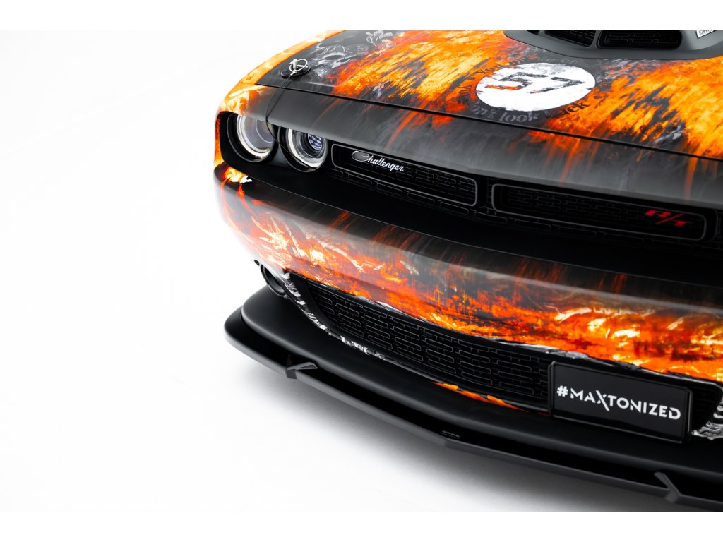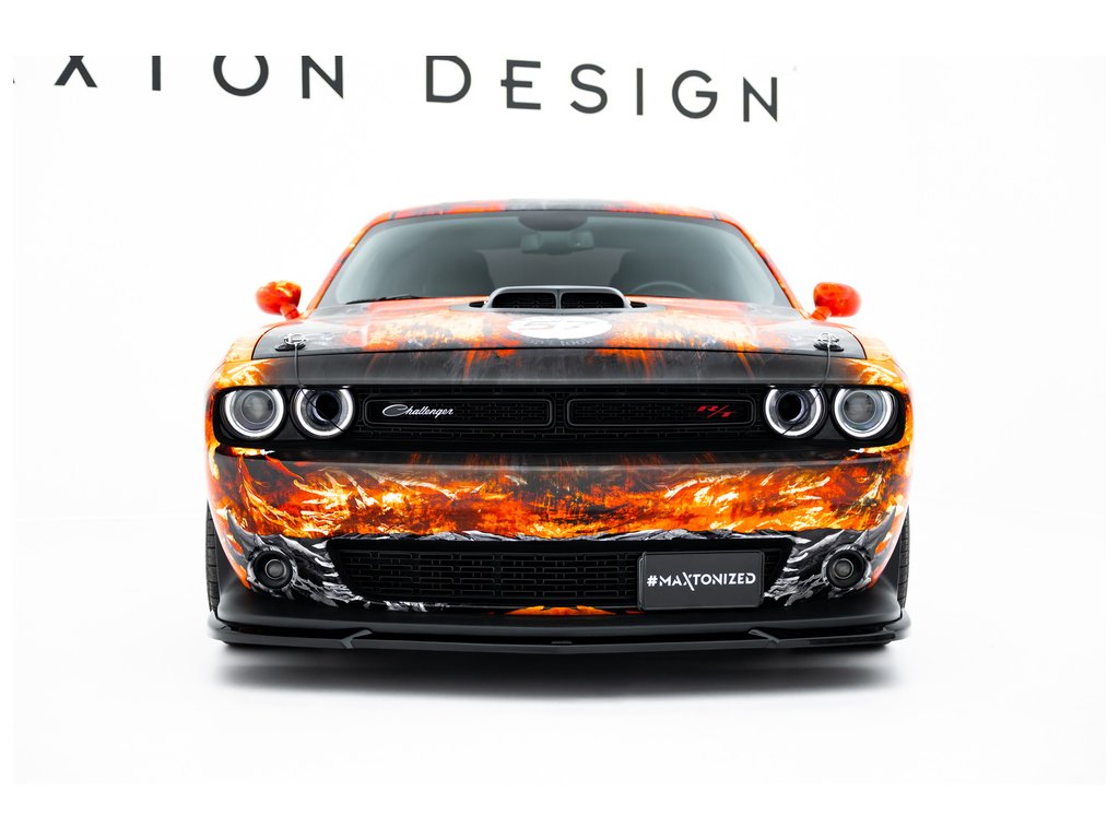 Maxton Design spoiler pod přední nárazník pro vozidlo Dodge Challenger GT Mk3 Facelift . Povrchová úprava spoileru černý lesklý plast ABS.