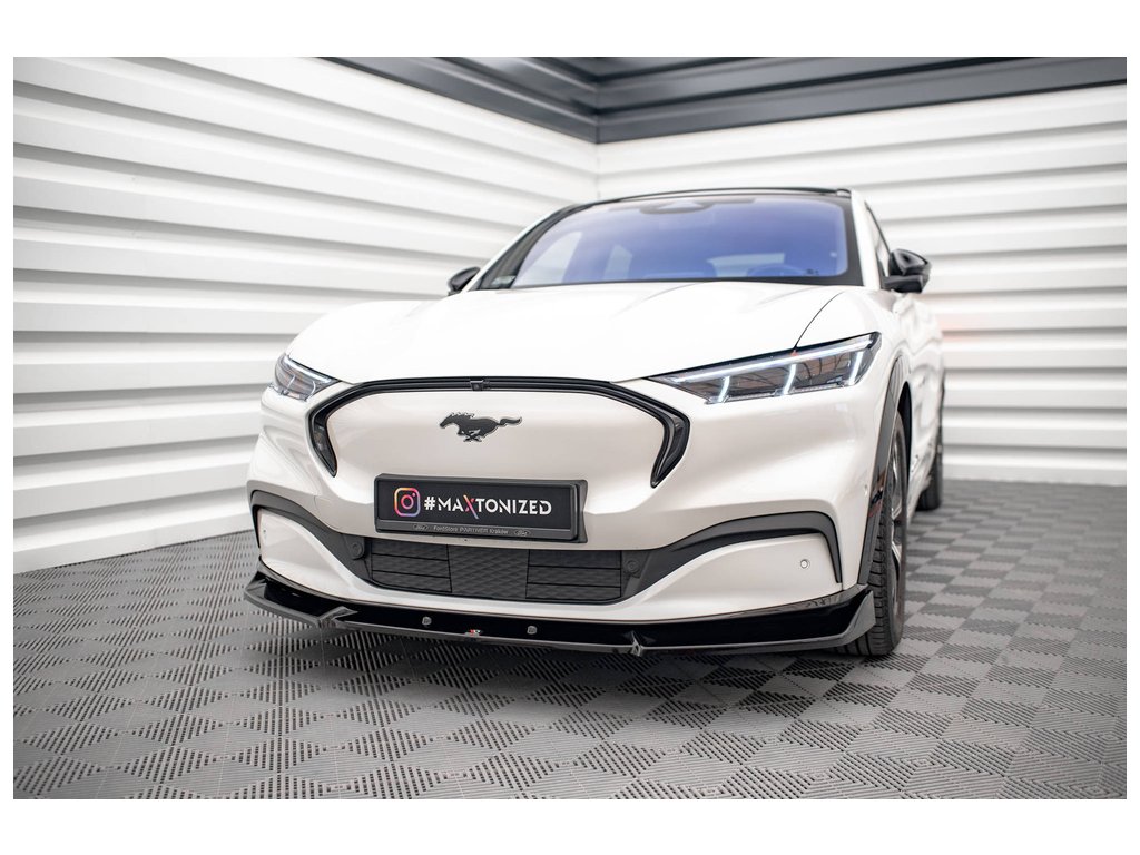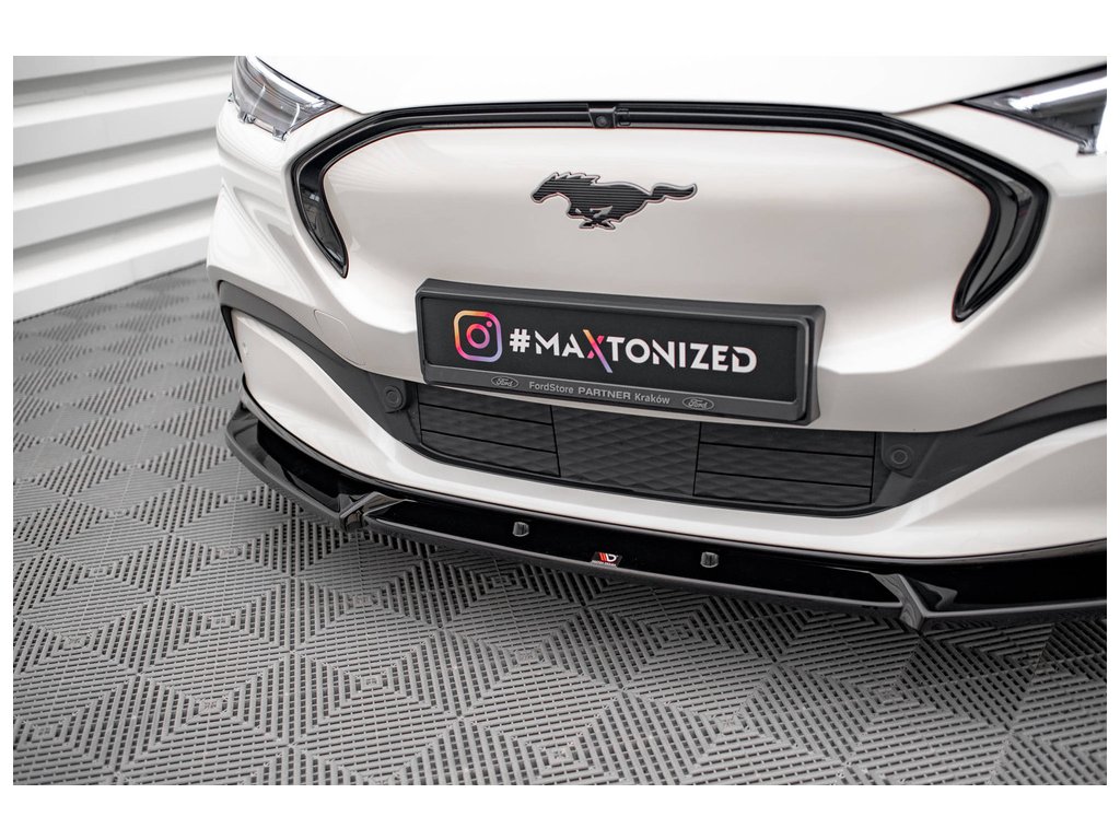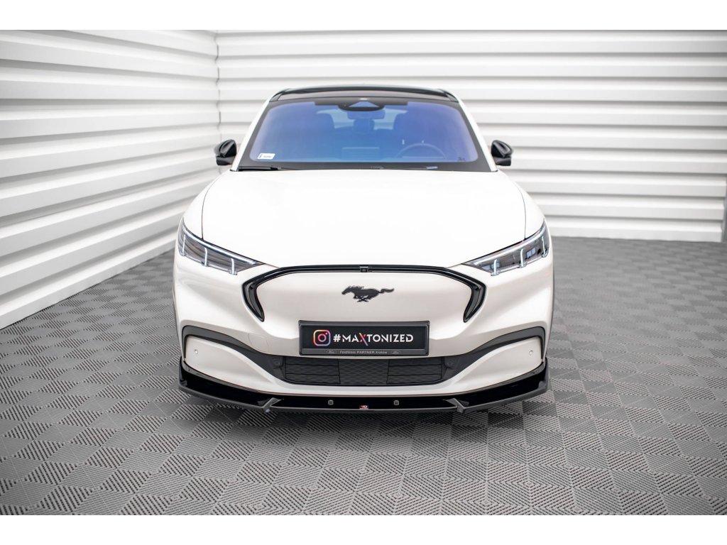 Maxton Design spoiler pod přední nárazník pro vozidlo Ford Mustang Mach-E Mk1 . Povrchová úprava spoileru černý lesklý plast ABS.
