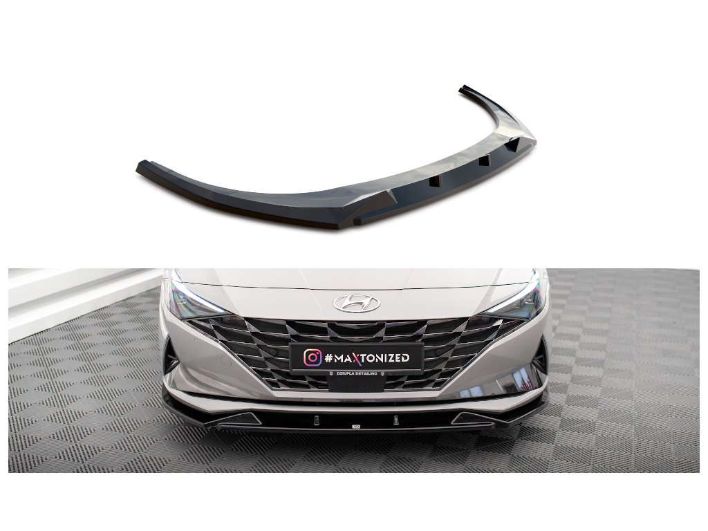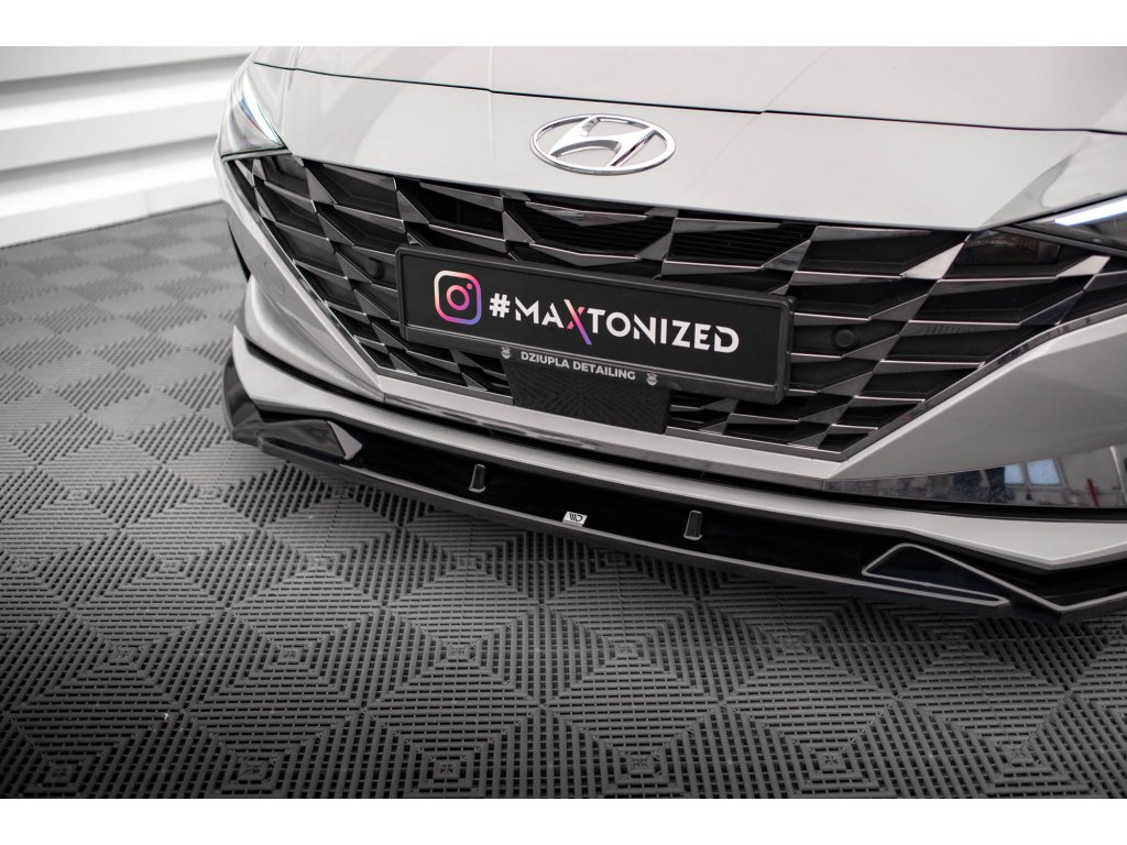 Maxton Design spoiler pod přední nárazník pro vozidlo Hyundai Elantra Mk7 . Povrchová úprava spoileru carbon-Look.