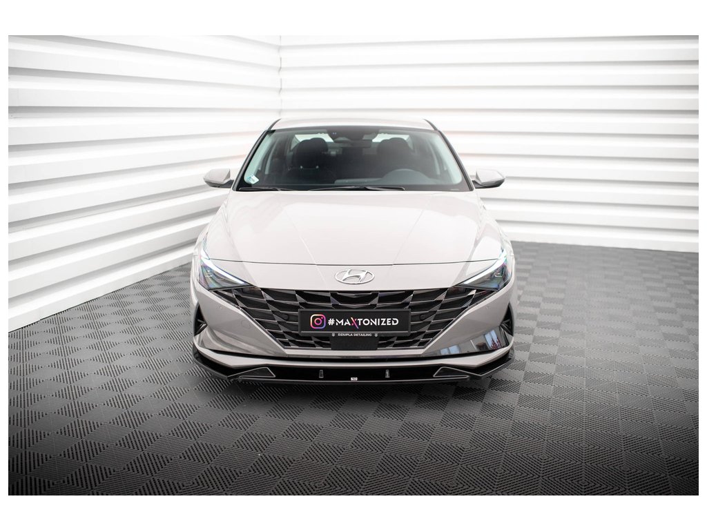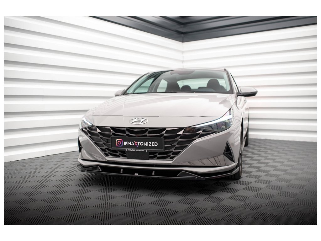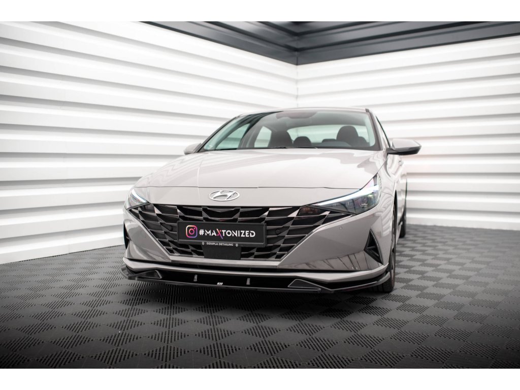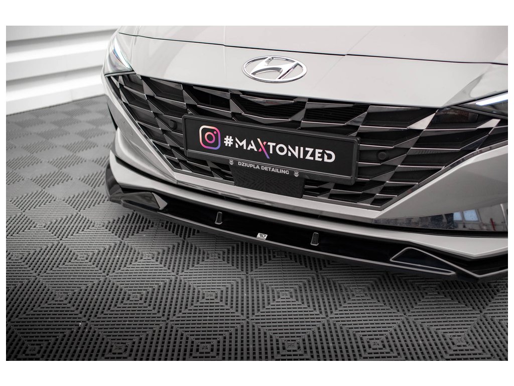 Maxton Design spoiler pod přední nárazník pro vozidlo Hyundai Elantra Mk7 . Povrchová úprava spoileru černý lesklý plast ABS.