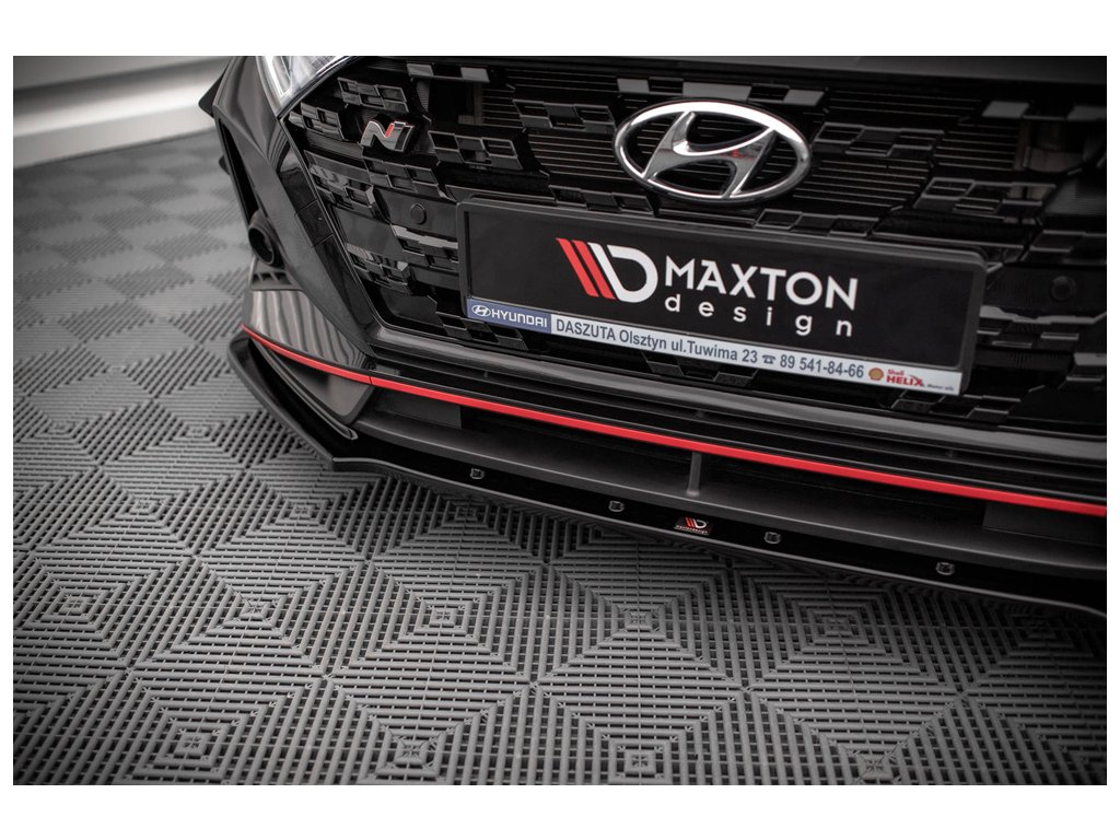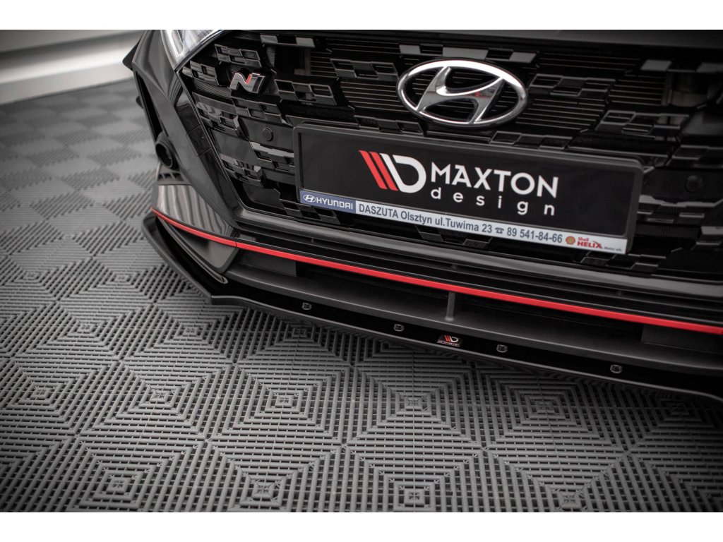 Maxton Design spoiler pod přední nárazník pro vozidlo Hyundai i20 N Mk3 . Povrchová úprava spoileru černý lesklý plast ABS.