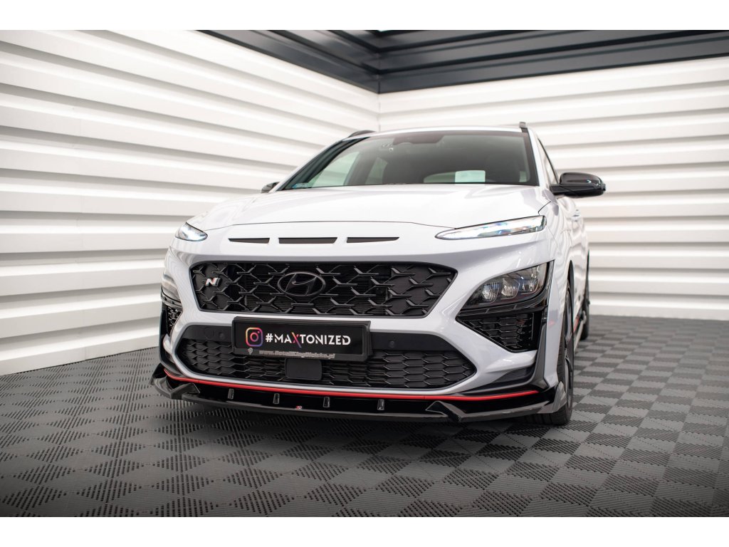 Maxton Design spoiler pod přední nárazník pro vozidlo Hyundai Kona N Mk1 . Povrchová úprava spoileru carbon-Look.
