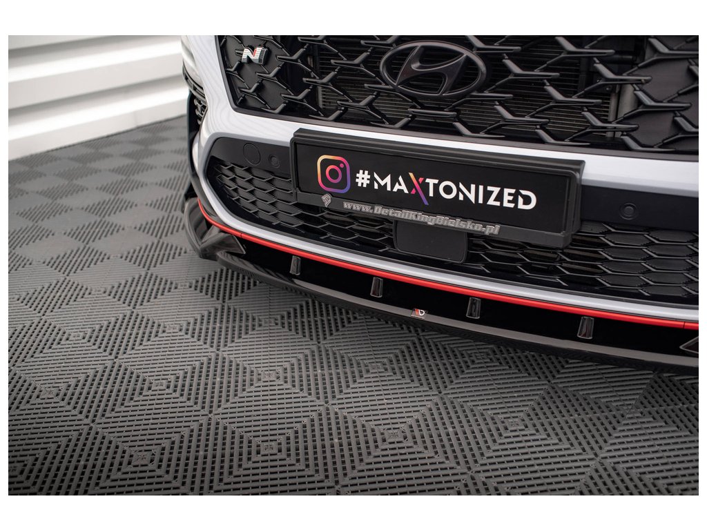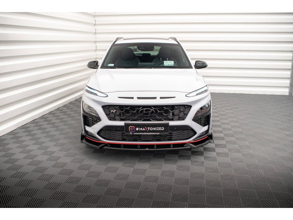 Maxton Design spoiler pod přední nárazník pro vozidlo Hyundai Kona N Mk1 . Povrchová úprava spoileru černý lesklý plast ABS.