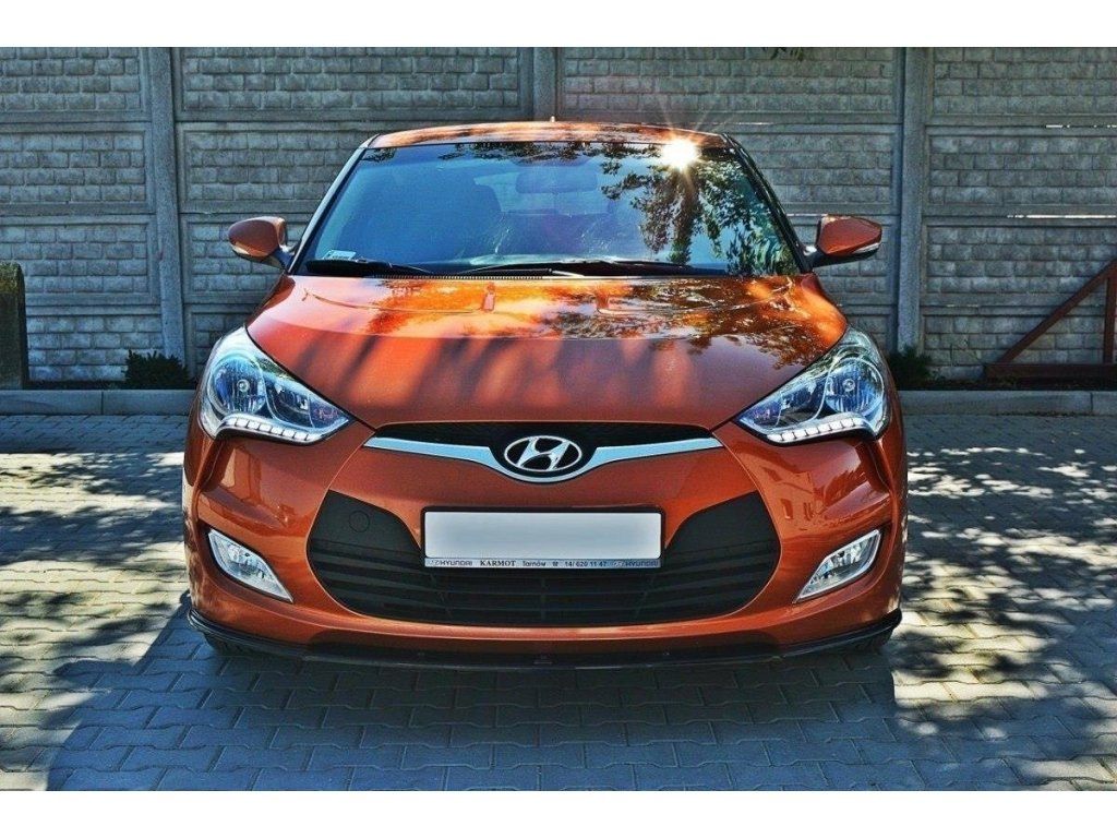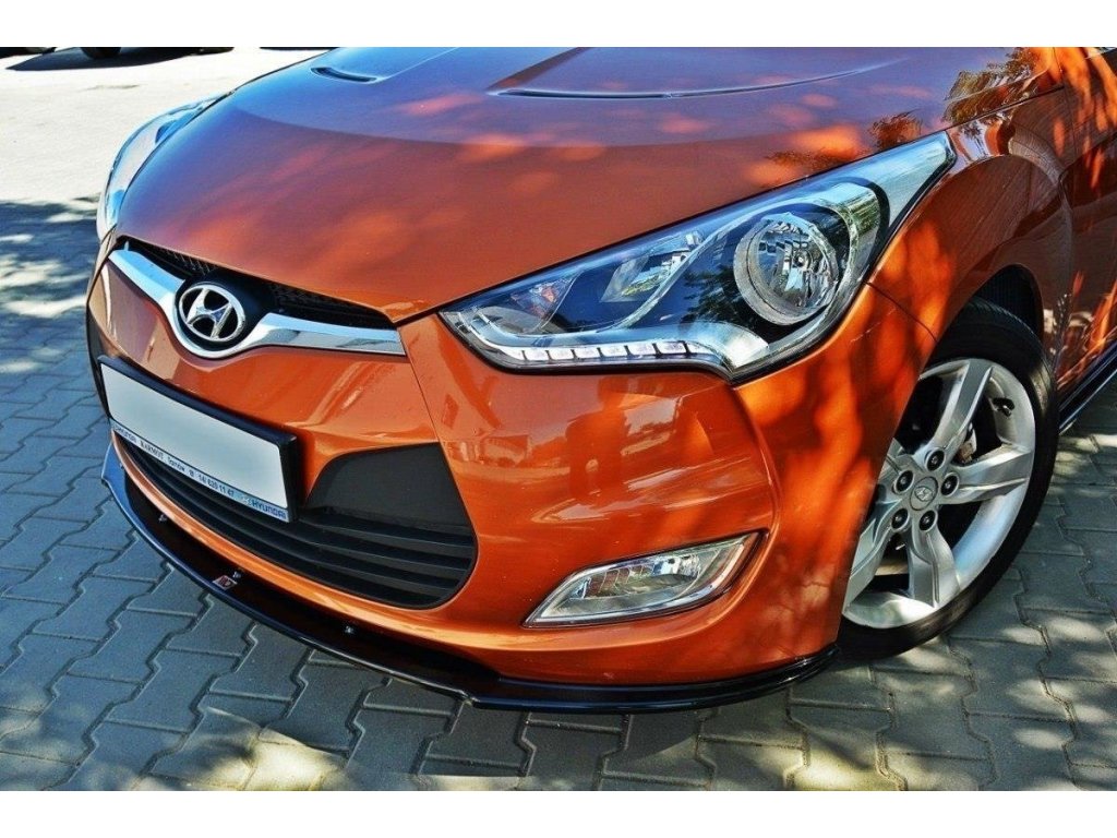 Maxton Design spoiler pod přední nárazník pro vozidlo Hyundai Veloster . Povrchová úprava spoileru carbon-Look.