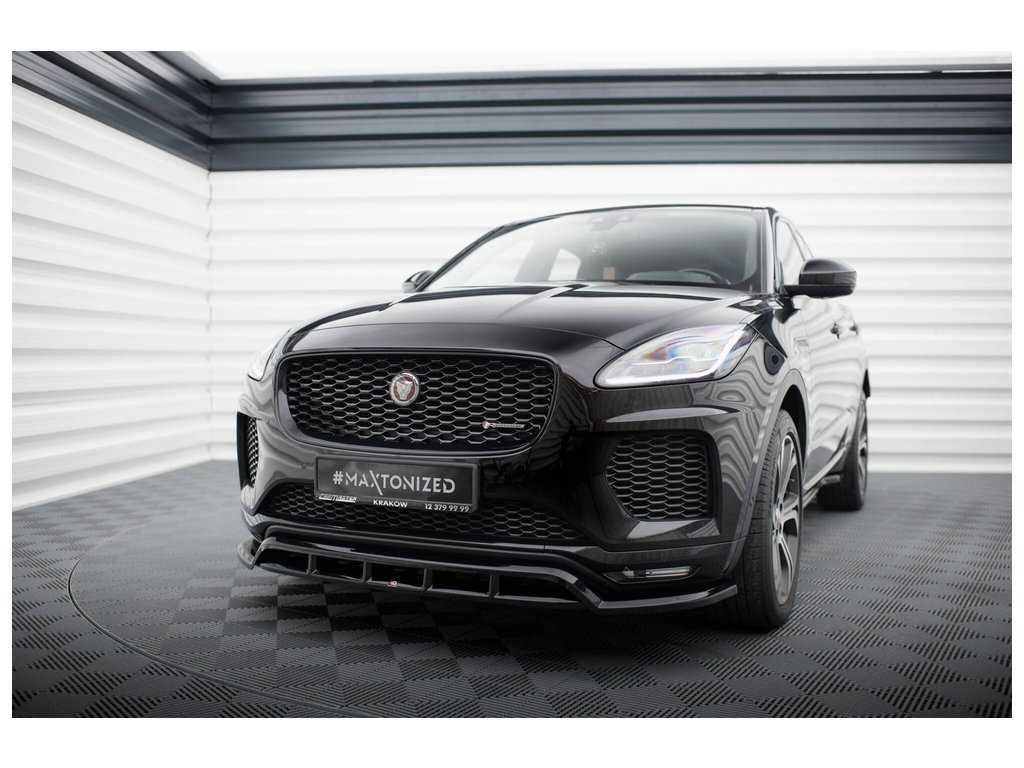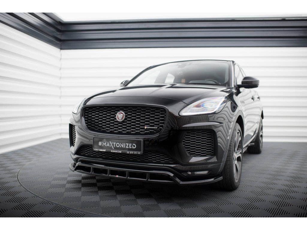 Maxton Design spoiler pod přední nárazník pro Jaguar E-Pace Mk1 R-Dynamic, černý lesklý plast ABS