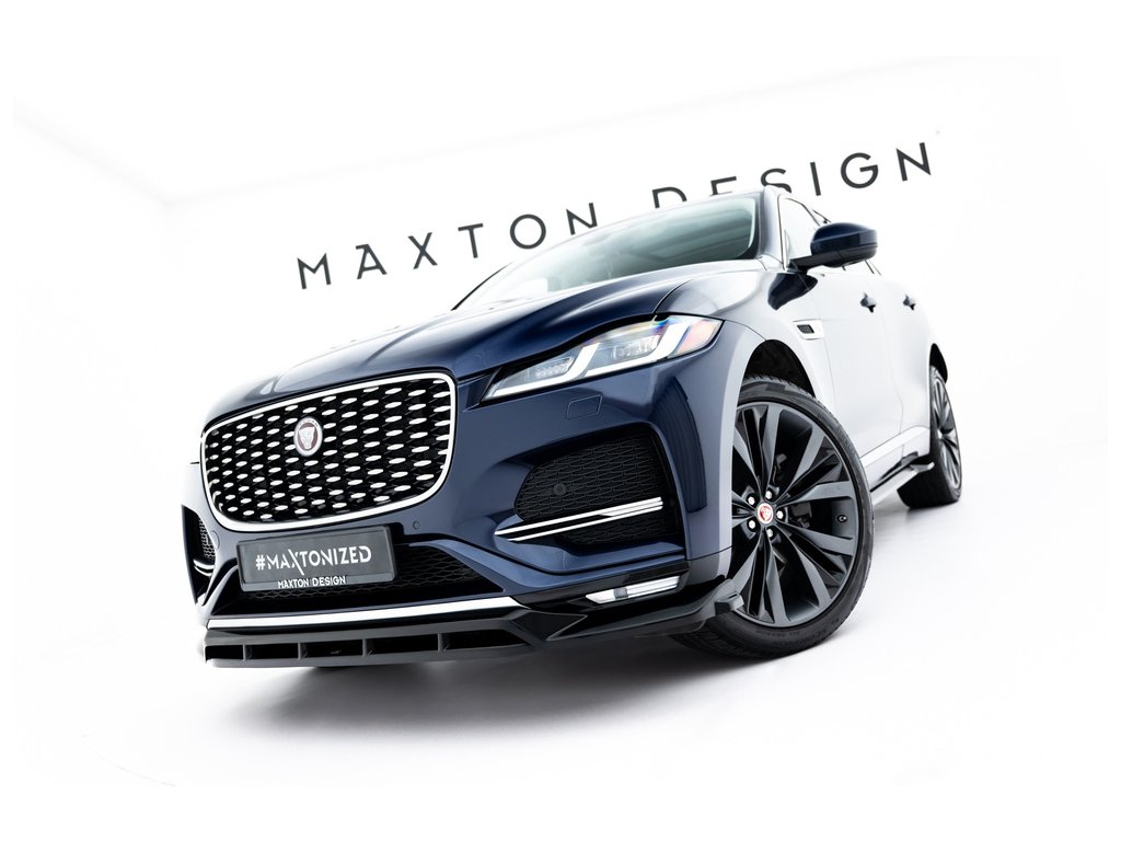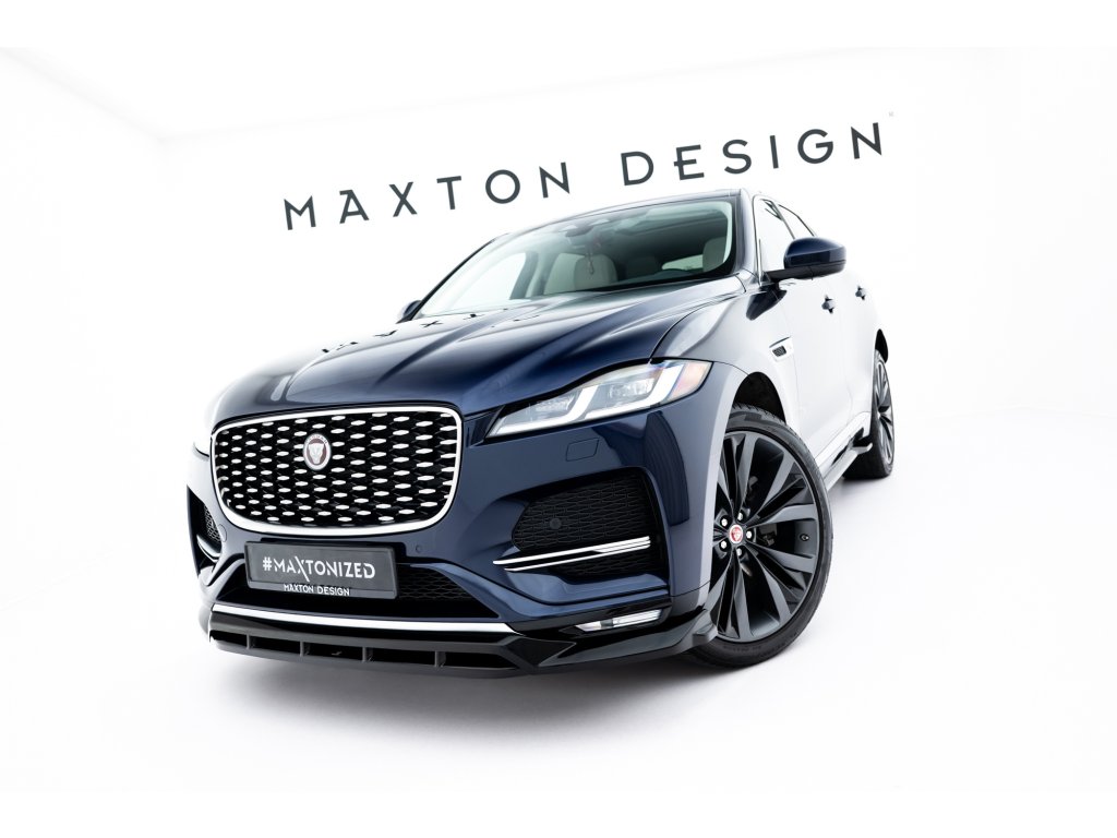 Maxton Design spoiler pod přední nárazník pro Jaguar F-Pace R-Sport Mk1 Facelift, černý lesklý plast ABS