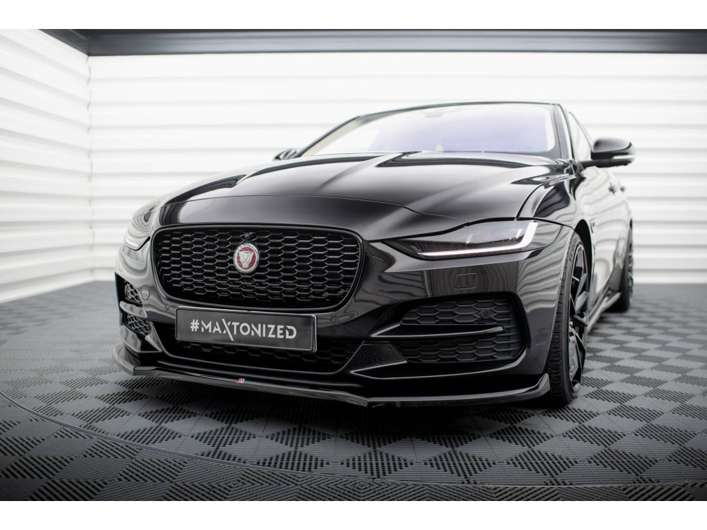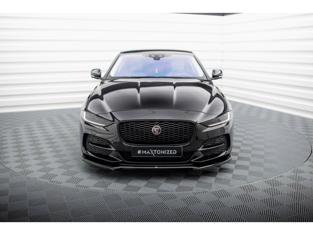 Maxton Design spoiler pod přední nárazník pro vozidlo Jaguar XE Mk1 Facelift . Povrchová úprava spoileru černý lesklý plast ABS.