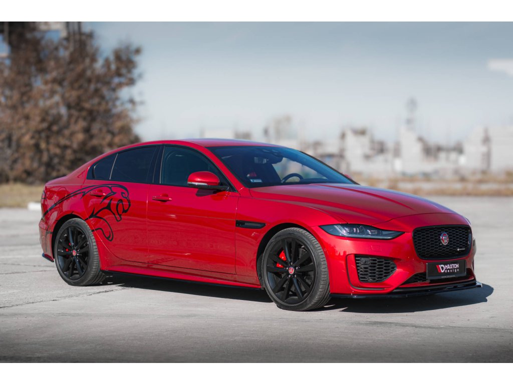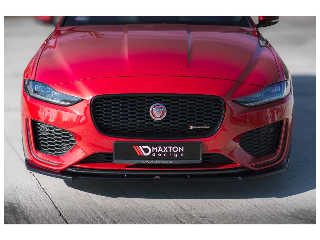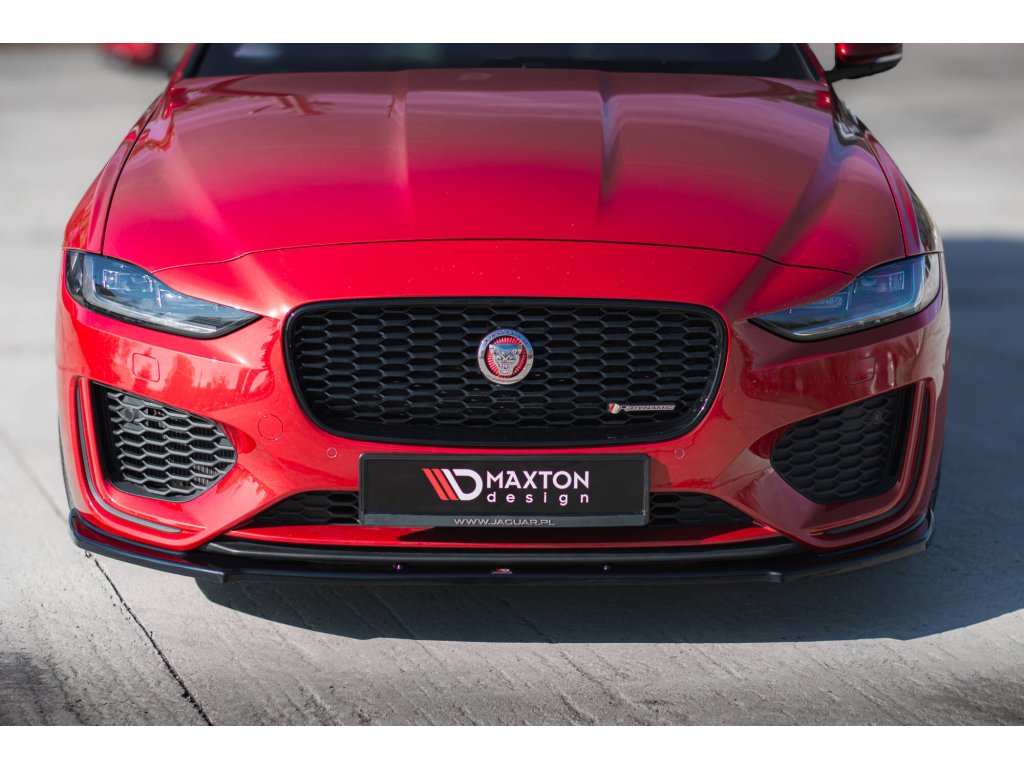 Maxton Design spoiler pod přední nárazník pro vozidlo Jaguar XE Mk1 Facelift X760 R-Dynamic . Povrchová úprava spoileru černý lesklý plast ABS.