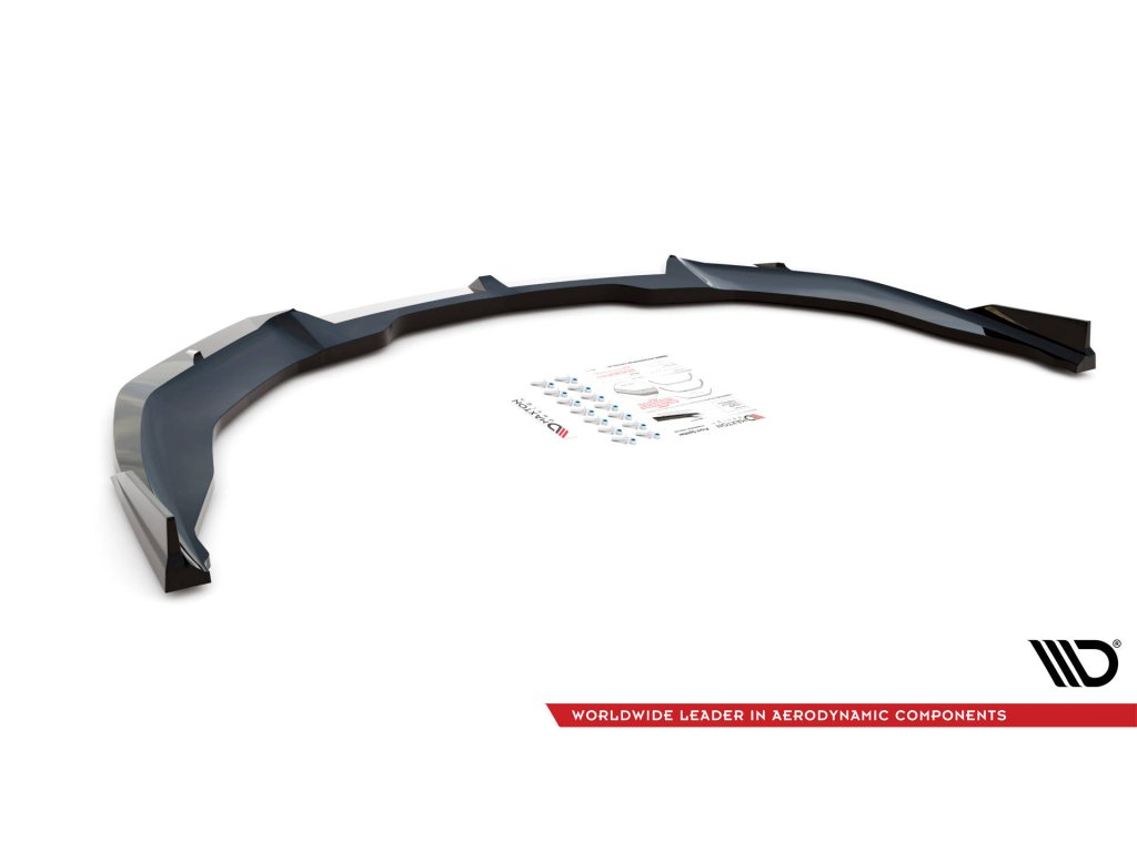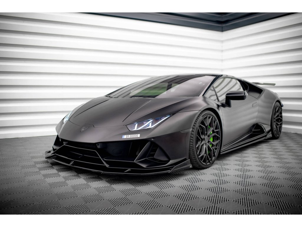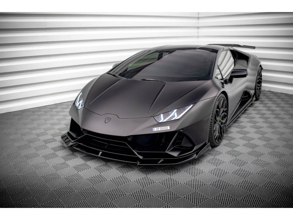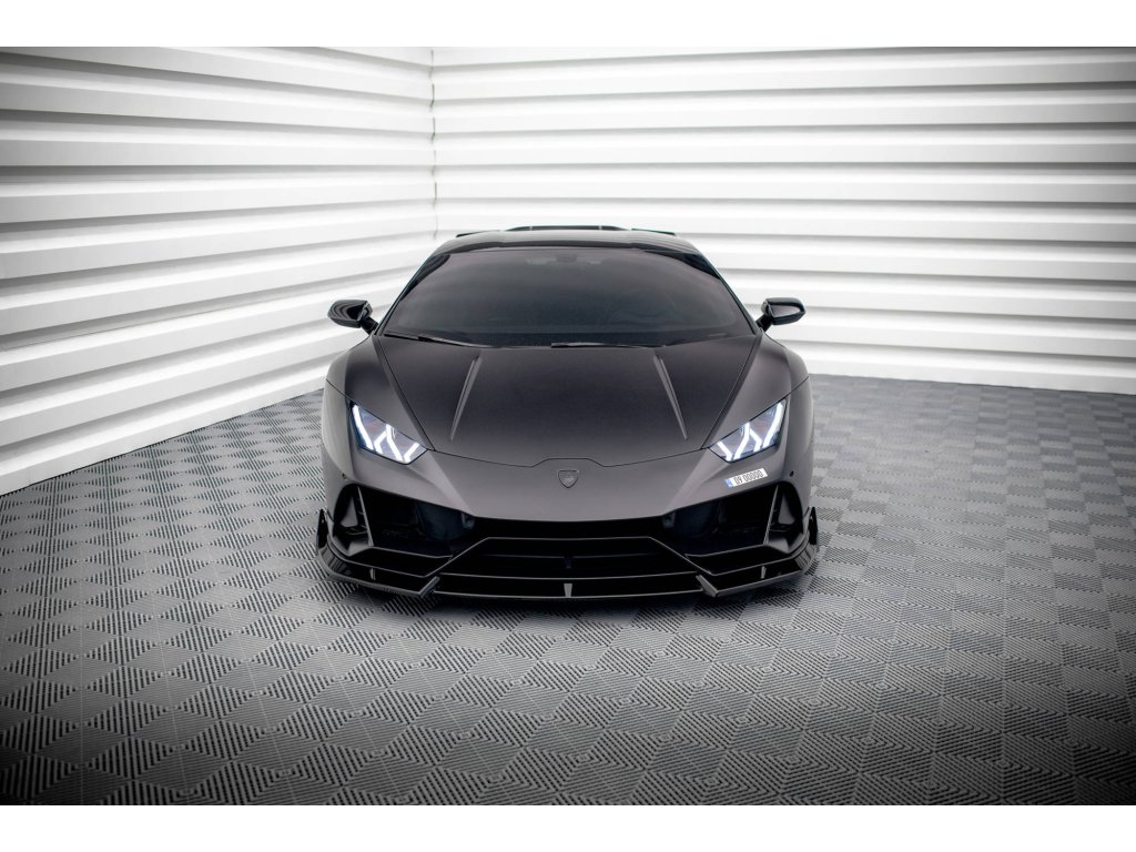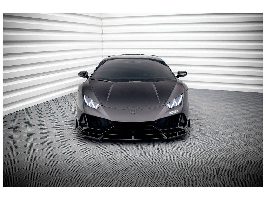 Maxton Design spoiler pod přední nárazník pro vozidlo Lamborghini Huracan EVO . Povrchová úprava spoileru černý lesklý plast ABS.