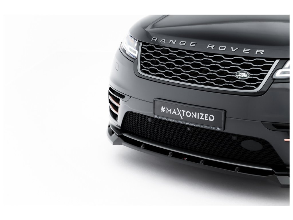 Maxton Design spoiler pod přední nárazník pro vozidlo Land rover Range Rover Velar Mk1 /R-Dynamic . Povrchová úprava spoileru černý lesklý plast ABS.