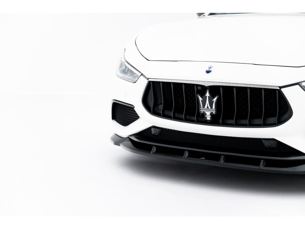 Maxton Design spoiler pod přední nárazník pro vozidlo Maserati Ghibli Modena Mk3 Facelift . Povrchová úprava spoileru černý lesklý plast ABS.