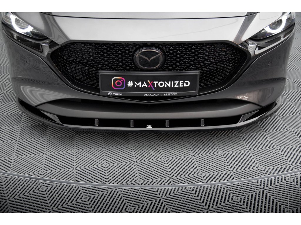 Maxton Design spoiler pod přední nárazník pro vozidlo Mazda 3 Mk4 . Povrchová úprava spoileru černý lesklý plast ABS.