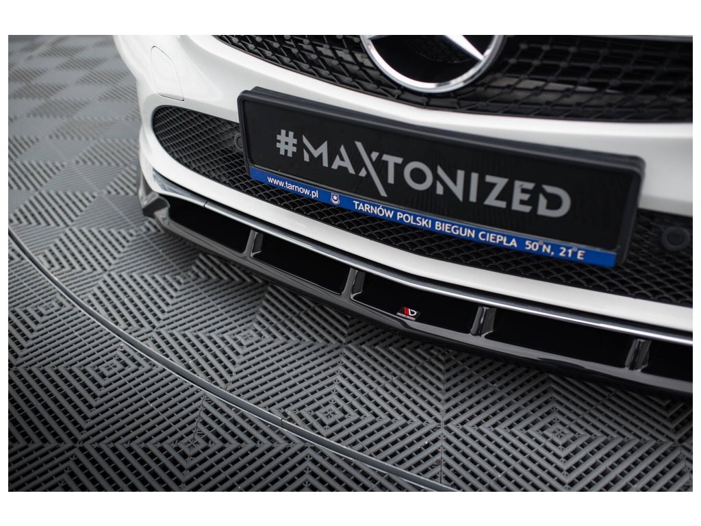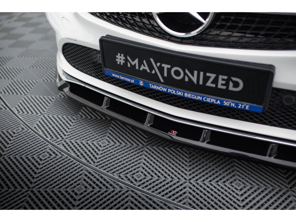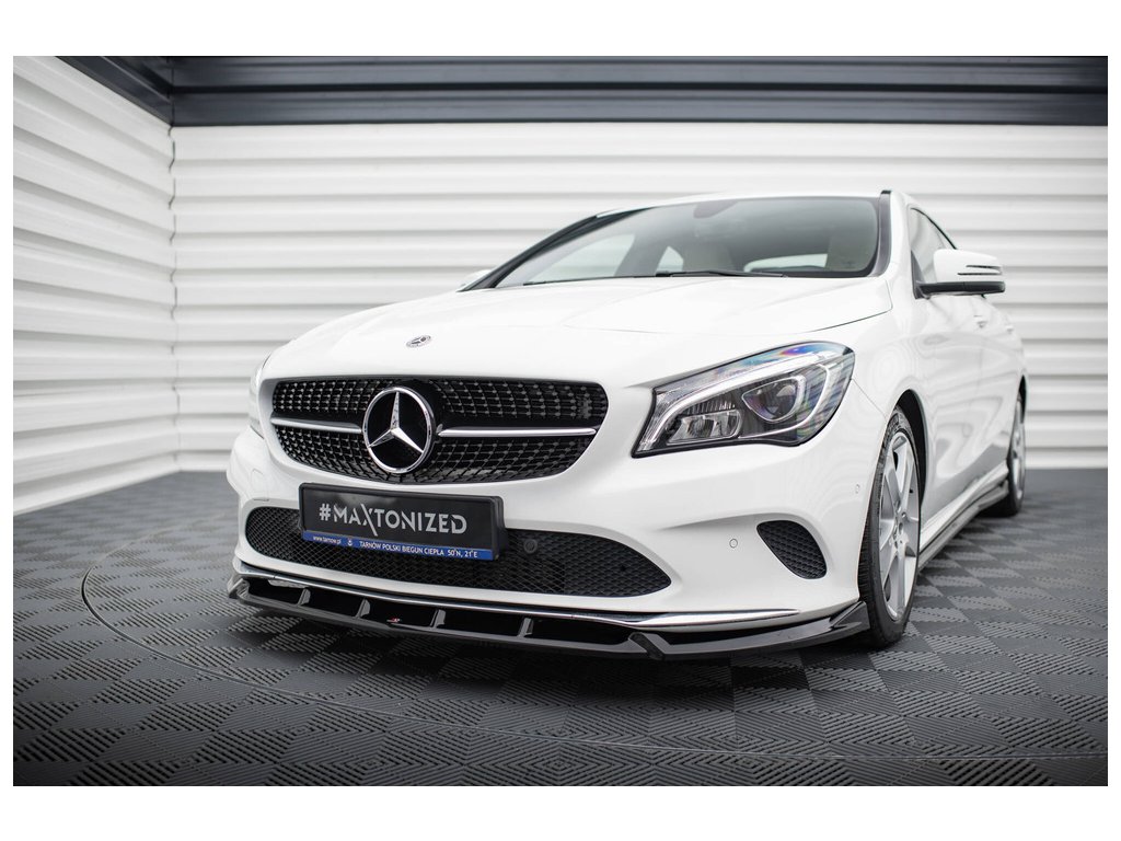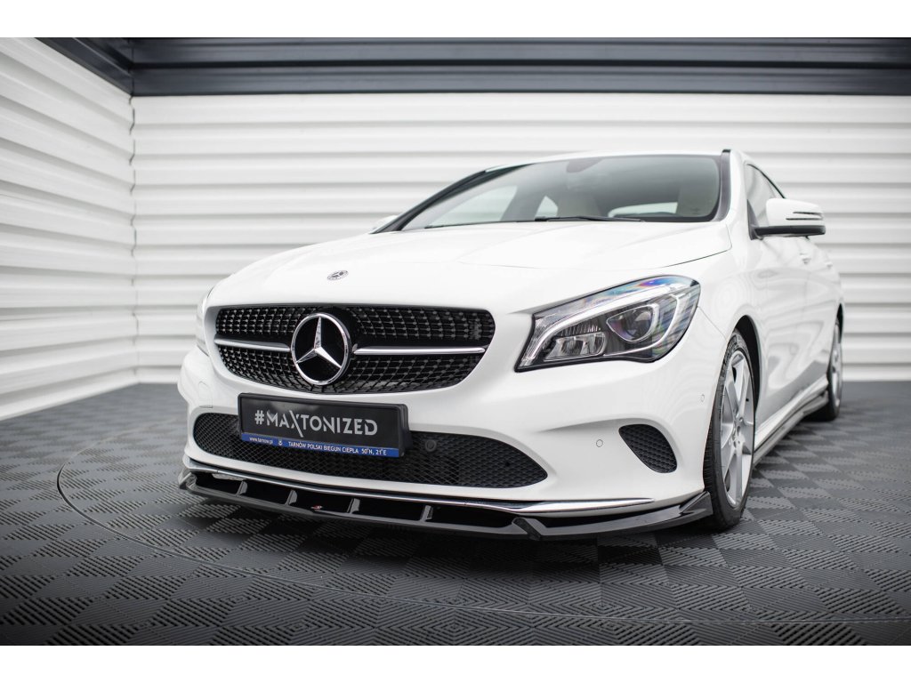 Maxton Design spoiler pod přední nárazník pro vozidlo Mercedes CLA C 117 Facelift/Standard . Povrchová úprava spoileru černý lesklý plast ABS.