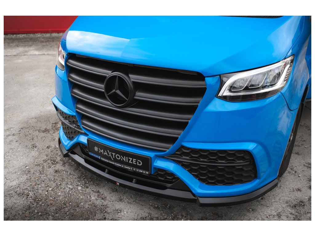 Maxton Design spoiler pod přední nárazník pro vozidlo Mercedes Sprinter Mk3 . Povrchová úprava spoileru černý lesklý plast ABS.