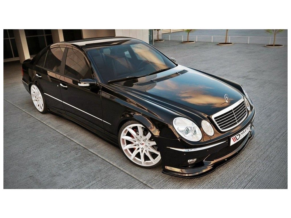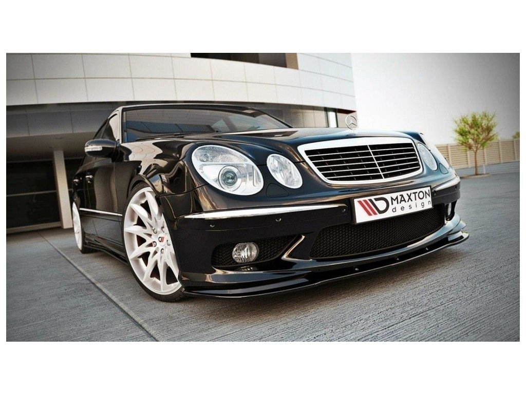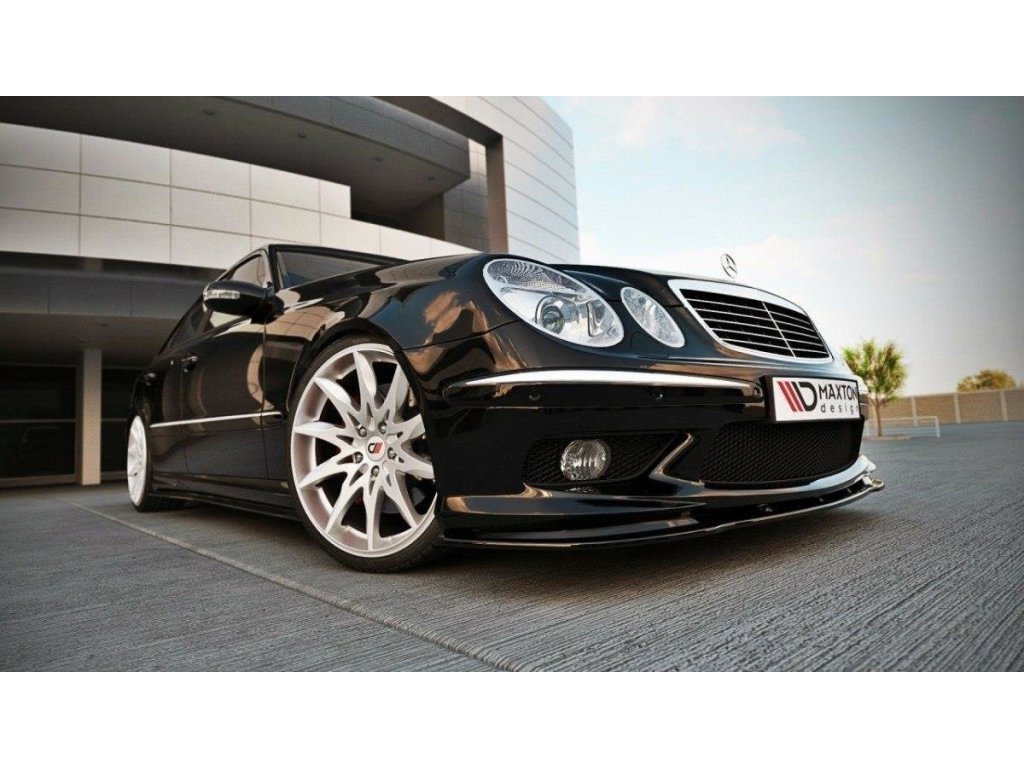 Maxton Design spoiler pod přední nárazník pro Mercedes třída E W211, černý lesklý plast ABS, předfacelift, r.v. 2002-2006