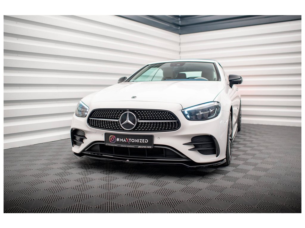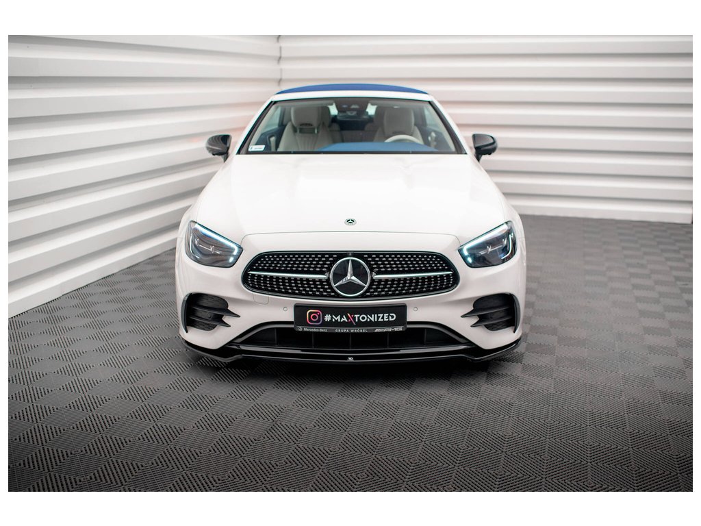 Maxton Design spoiler pod přední nárazník pro vozidlo Mercedes třída E W213/Cabrio (A238)/53 AMG, W213/Cabrio (A238)/AMG-Line . Povrchová úprava spoileru černý lesklý plast ABS.