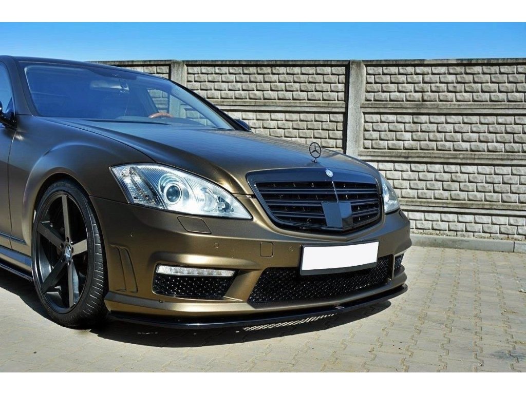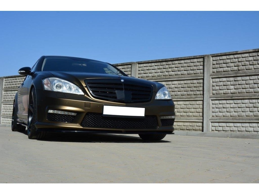 Maxton Design spoiler pod přední nárazník pro vozidlo Mercedes třída S W221/AMG . Povrchová úprava spoileru carbon-Look.