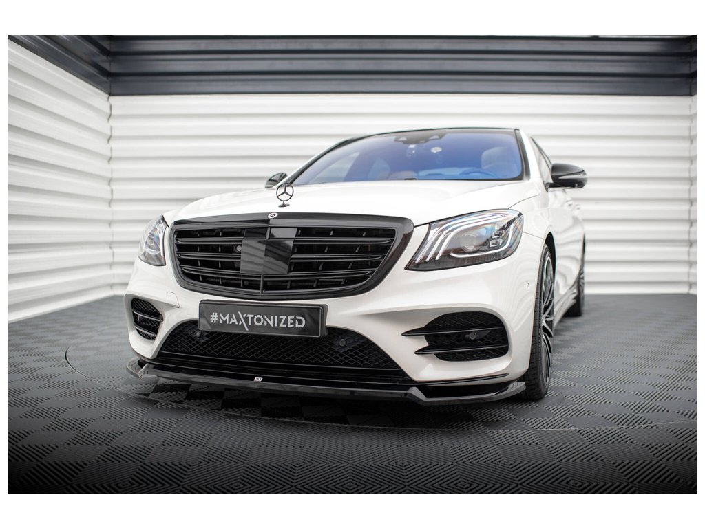 Maxton Design spoiler pod přední nárazník pro Mercedes třída S W222 AMG-Line Facelift, černý lesklý plast ABS