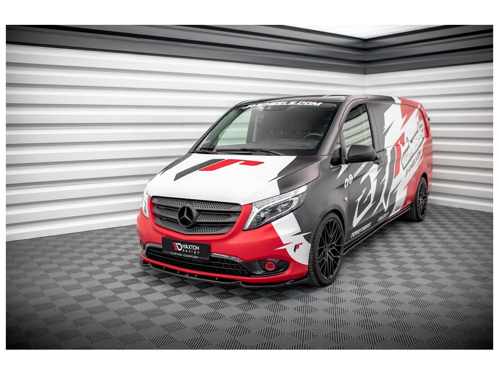 Maxton Design spoiler pod přední nárazník pro vozidlo Mercedes Vito W447 Facelift . Povrchová úprava spoileru černý lesklý plast ABS.