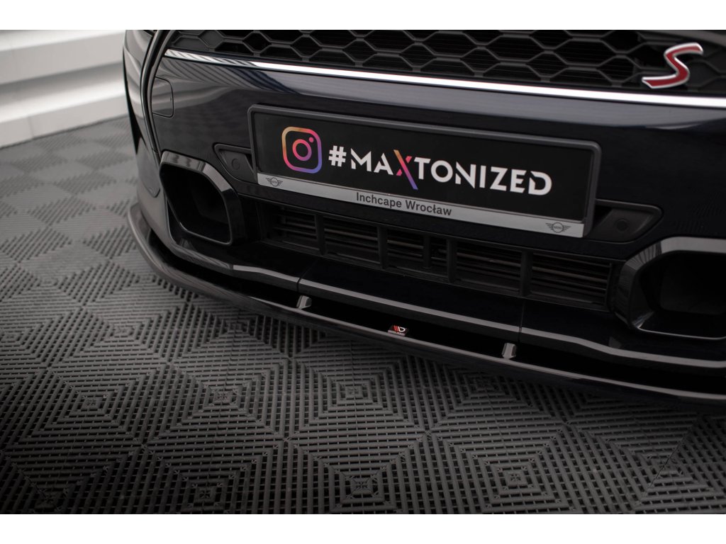 Maxton Design spoiler pod přední nárazník pro vozidlo Mini Cooper F56 Facelift . Povrchová úprava spoileru carbon-Look.
