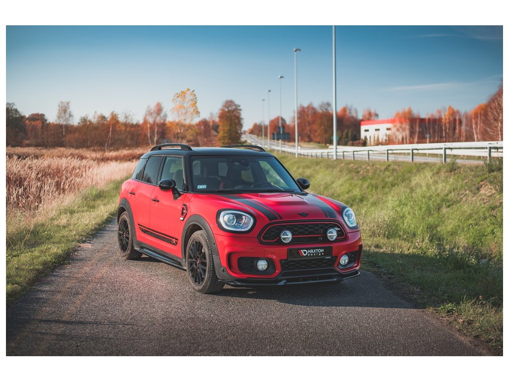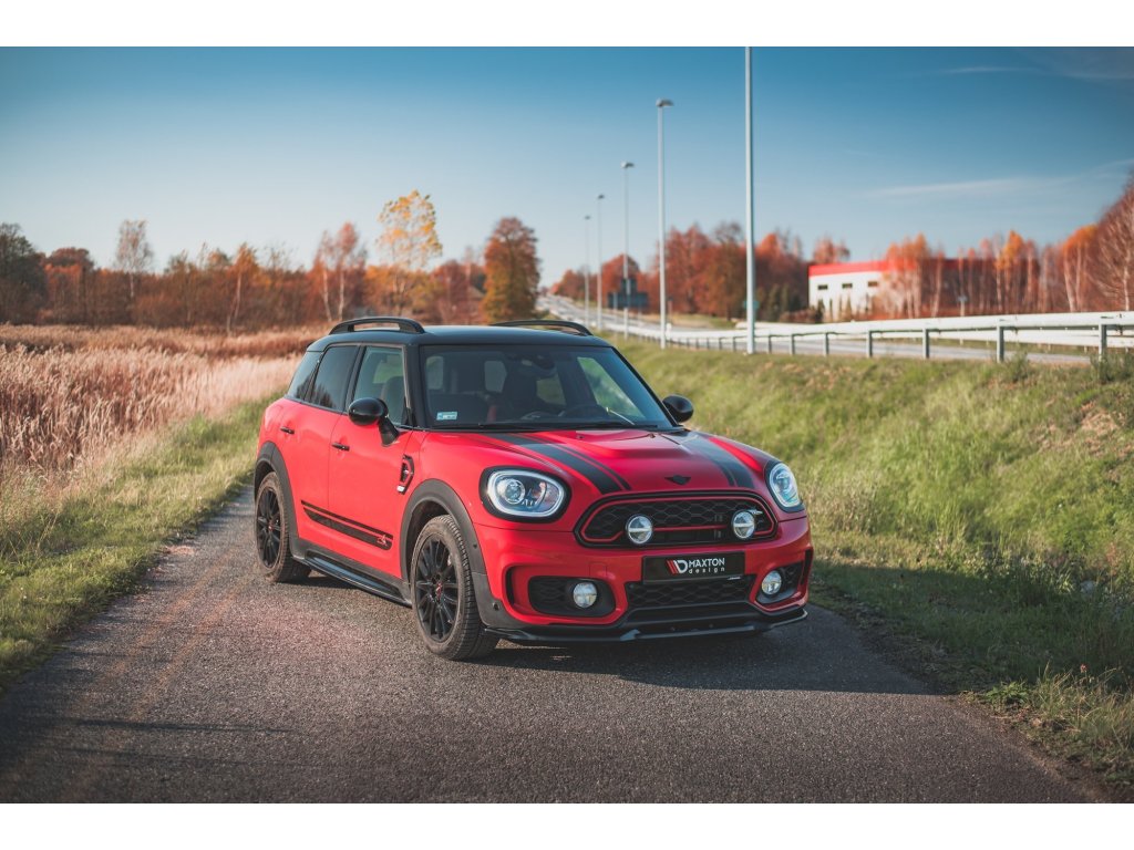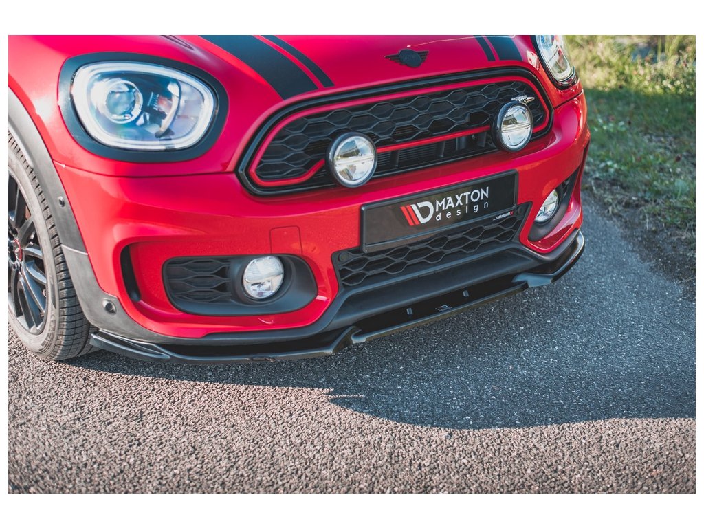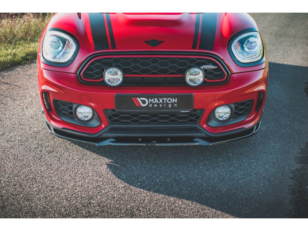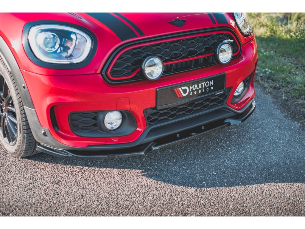 Maxton Design spoiler pod přední nárazník pro vozidlo Mini Countryman F60 . Povrchová úprava spoileru černý lesklý plast ABS.