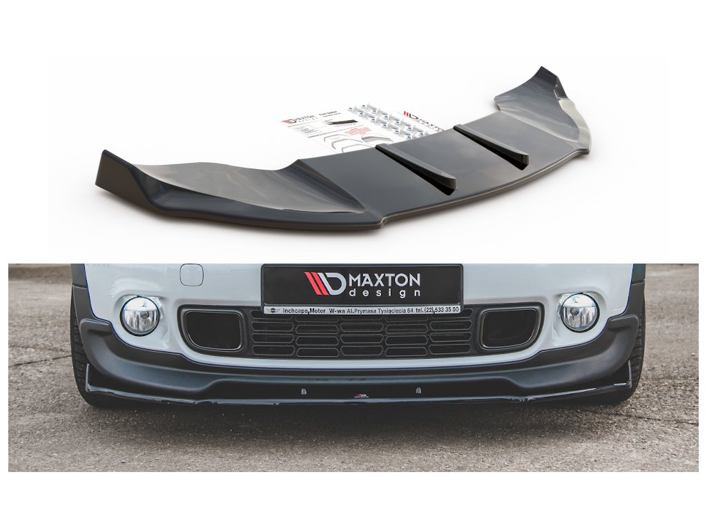 Maxton Design spoiler pod přední nárazník pro vozidlo Mini Countryman R60 . Povrchová úprava spoileru carbon-Look.