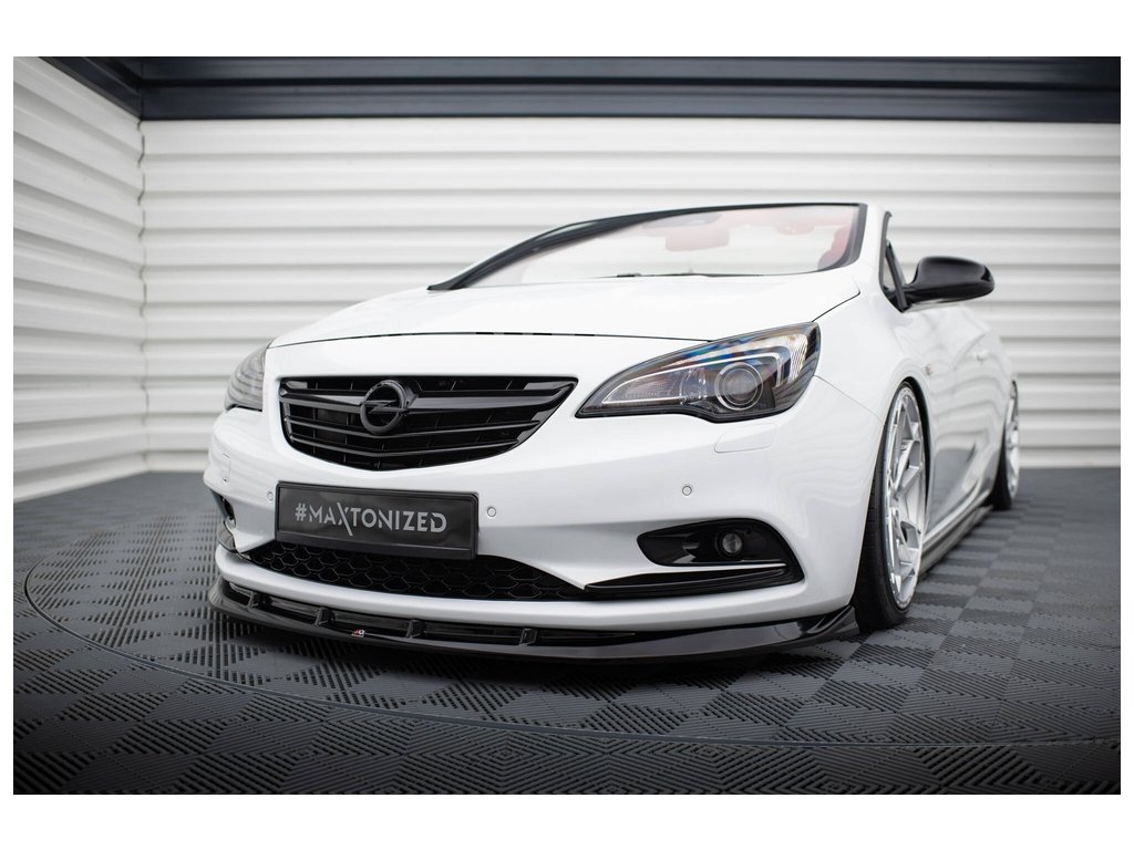 Maxton Design spoiler pod přední nárazník pro vozidlo Opel Cascada . Povrchová úprava spoileru černý lesklý plast ABS.