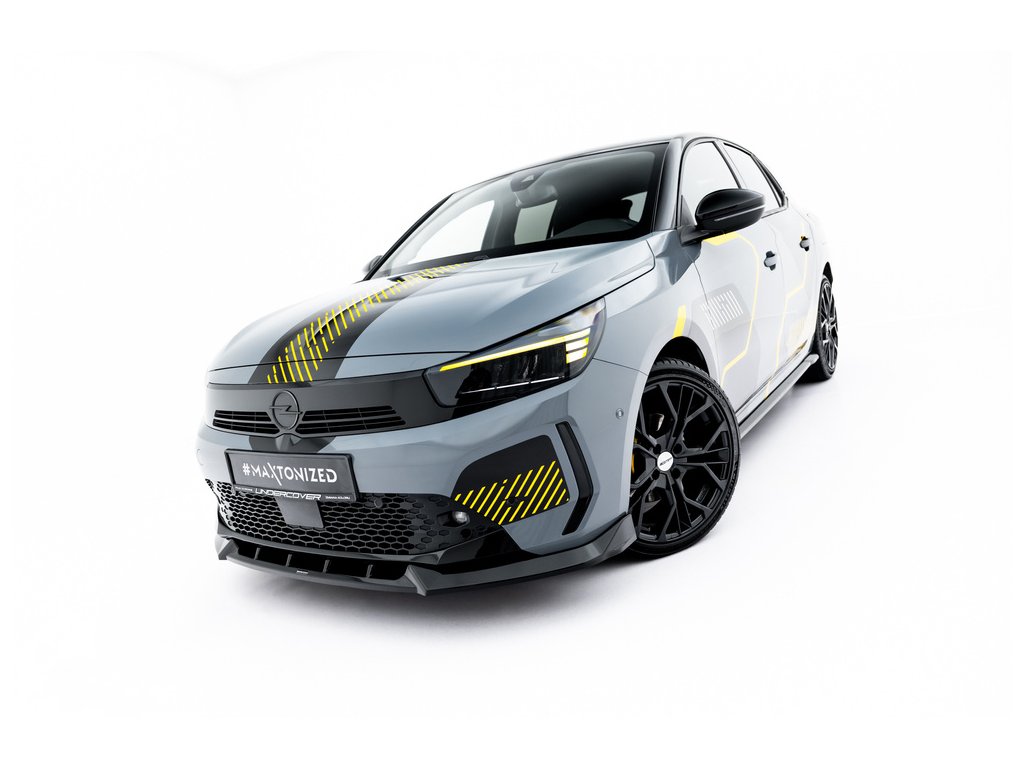 Maxton Design spoiler pod přední nárazník pro Opel Corsa F (Mk6) Facelift, černý lesklý plast ABS