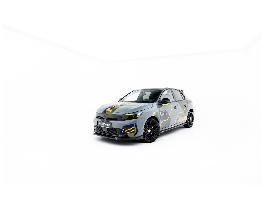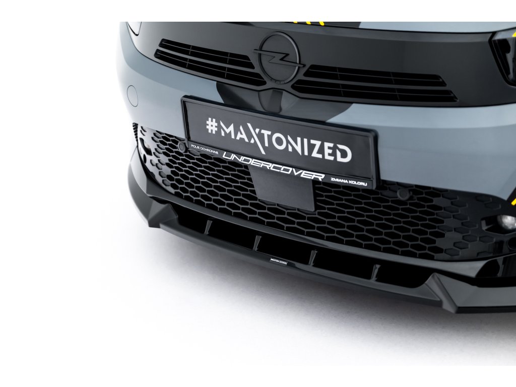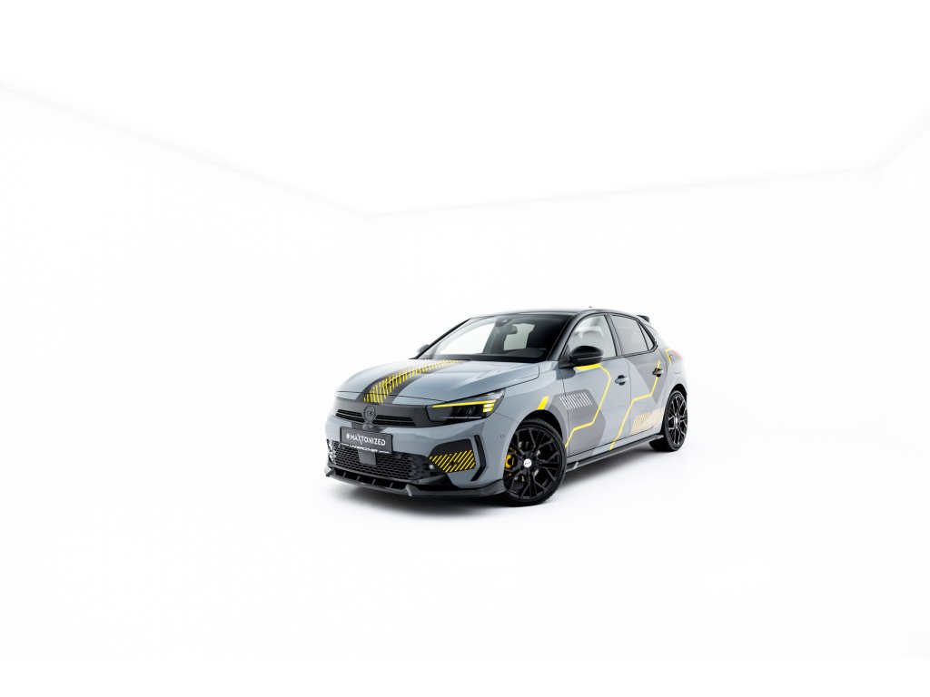 Maxton Design spoiler pod přední nárazník pro vozidlo Opel Corsa F (Mk6) Facelift . Povrchová úprava spoileru černý lesklý plast ABS.